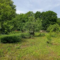 Krundil asuvad viljapuud ja põõsad, kasutatud kasvuhoone.