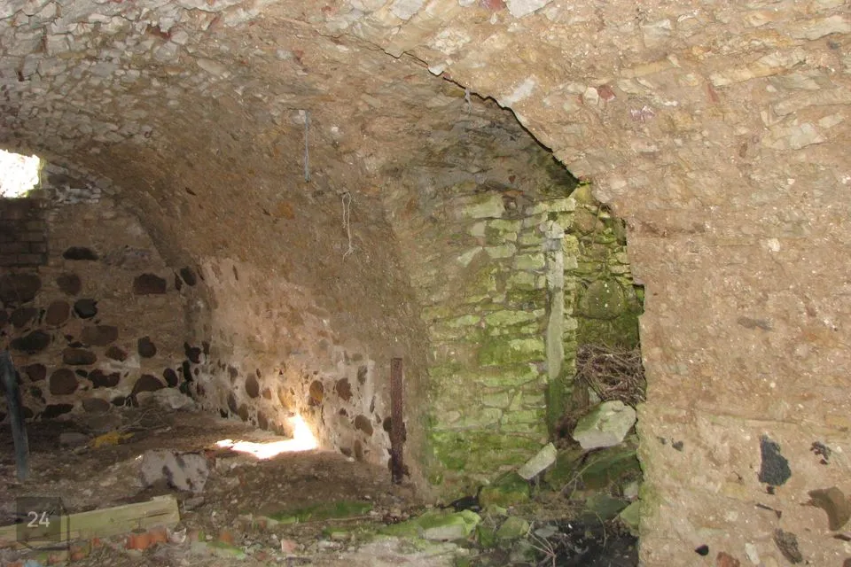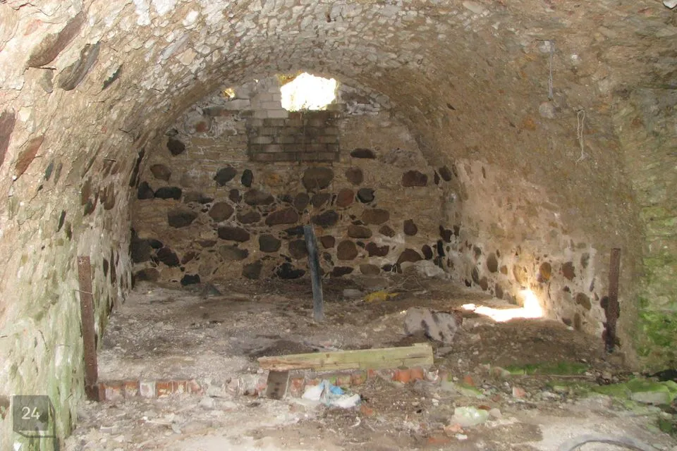 The country has a very well-preserved limestone cellar with an arched ceiling. The spacious building is dry inside and has a partially cemented floor.