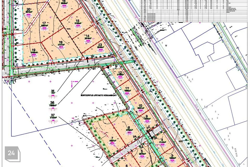 30 kinnistut 96493m2, kokku koos teedega123524m2.