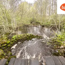 Looduskaunis kinnistu kunagise vesiveski maakivist varemete ja oma paisjärvega, lookleva Külge oja kaldal.