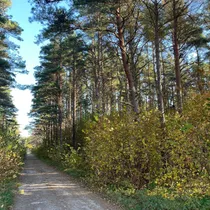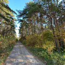 Kinnistul on kõrged männipuud, mõned kadakad ja kasedki lehvivad tuules.