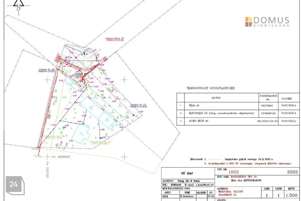 Kinnistul asub vana kaev kastmisvee jaoks, 5 meetrit krundi piirist on olemas tsentraalne kanalisatsioon, liitumisvõimalus olemas. Elekter olemas 63A (liitumisleping sõlmitud).