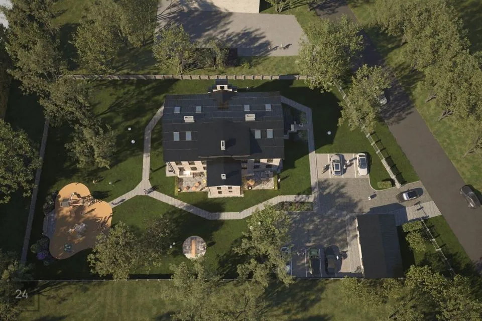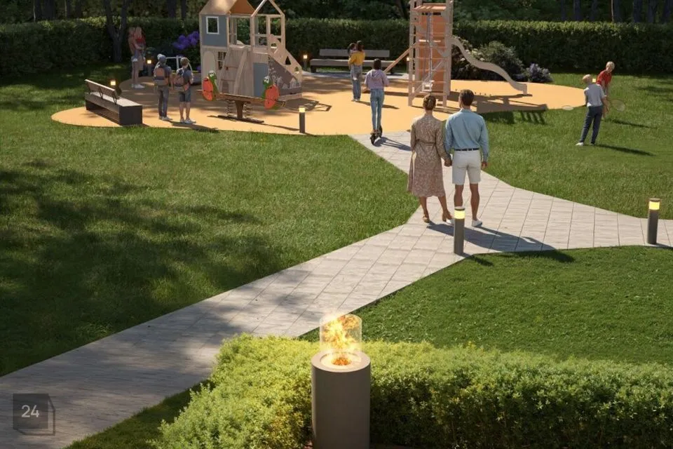 Projektiga on lahendatud ka kinnistusisene haljastus, piirded, puhkealad, mänguväljakud, kergliiklusteed ja parkimiskohad.