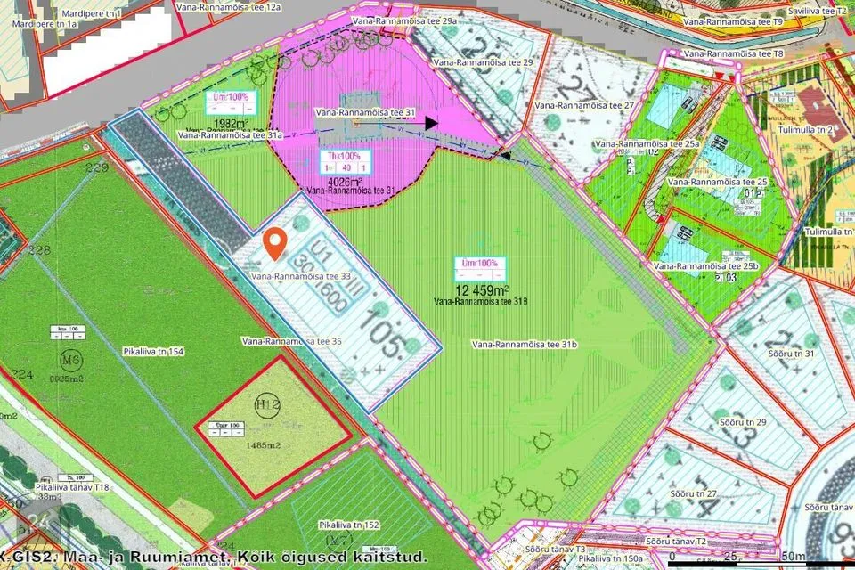 Kinnistu Vana-Rannamõisa tee 33 on ühiskondlike ehitiste maa 100% - 3452.0 m², millest metsamaa 1161.0 m² ja muu maa 2291.0 m². Kinnistu Vana-Rannamõisa tee 31b on üldkasutatav maa 100% -12216.0 m², millest metsamaa 7235.0 m² ja muu maa 4981.0 m².