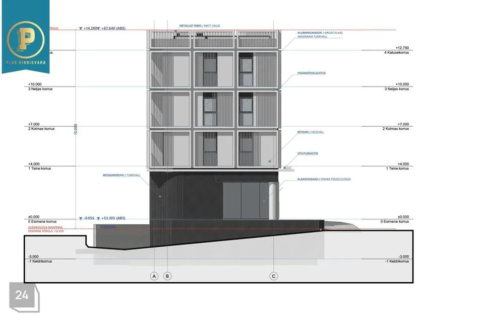 Hoone energiatõhususklass on A ja katusele planeeritud päikesepark.