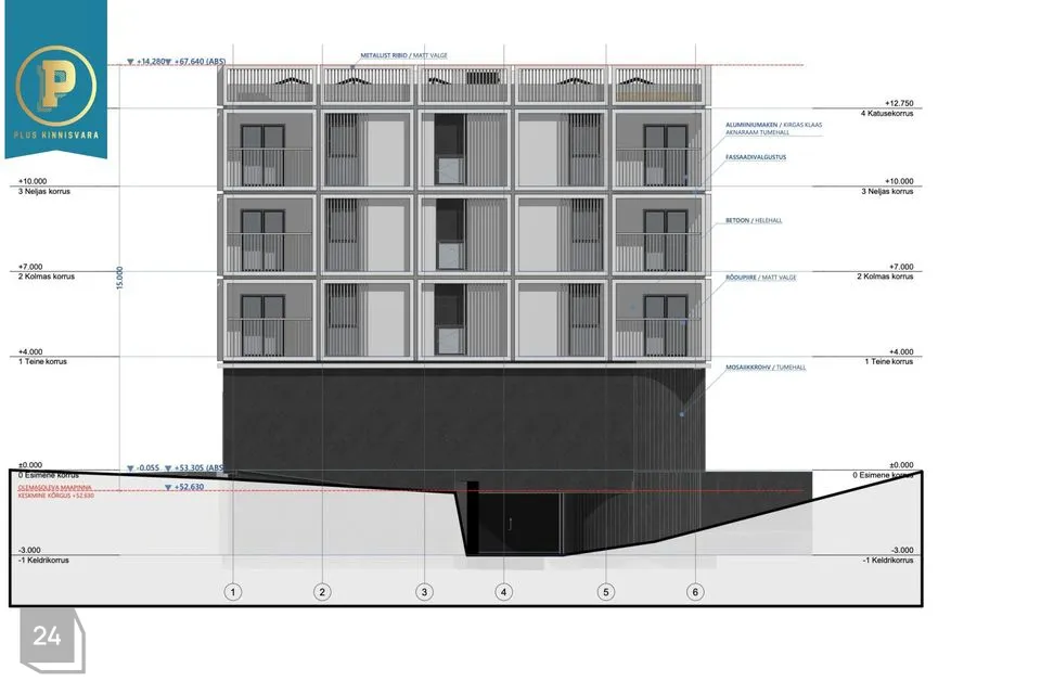 -I korrusele on paigutatud parkimine 5-le autole + tehnoruumid, rattaparkla;