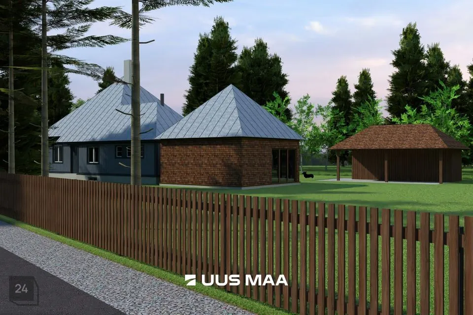 Avar ja valgusküllane kinnistu pakub suurepärast privaatsust tänu külgedel paiknevale kõrghaljastusele. Olemas on registreeritud salvkaev ning registreeritud abihoone, mis praeguseks on laiendatud garaažiks (laienemine vajab seadustamist) - projekt on tehtud järgides maja stiili, mis on samuti kelpkatusega puitlaudishoone. Garaazi viib kivisillutis ja elektriline liugvärav.