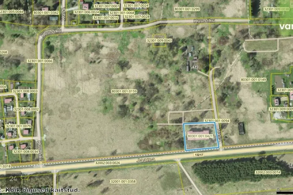 Tartu Maakohtu kinnistusosakonna registriosa number 23******, katastritunnus 80301:001:0421, sihtotstarve elamumaa 100%, pindala 2229 m², alghind 6 000 eurot.