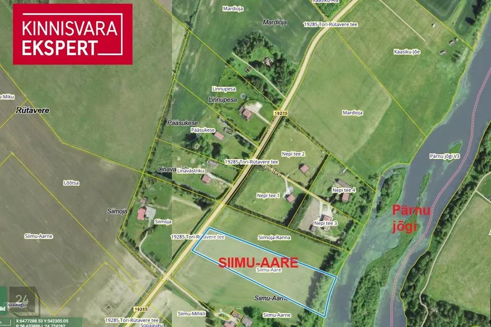 Pärnu jõega piirneval krundil on ca 72 meetrit veepiiri.
