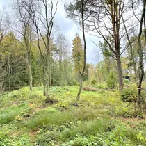 Kinnistutel põhiliselt kõrged männid, osaliselt sanglepad ja kohati ka pihlakaid.