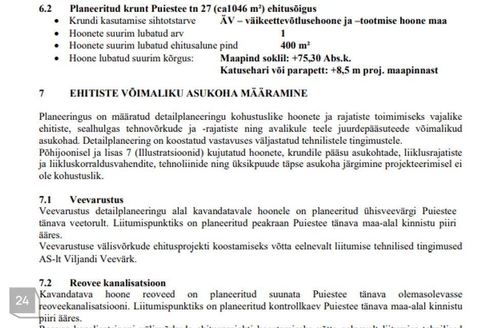 Detailplaneeringu järgi on lubatud ehitada üks hoone.