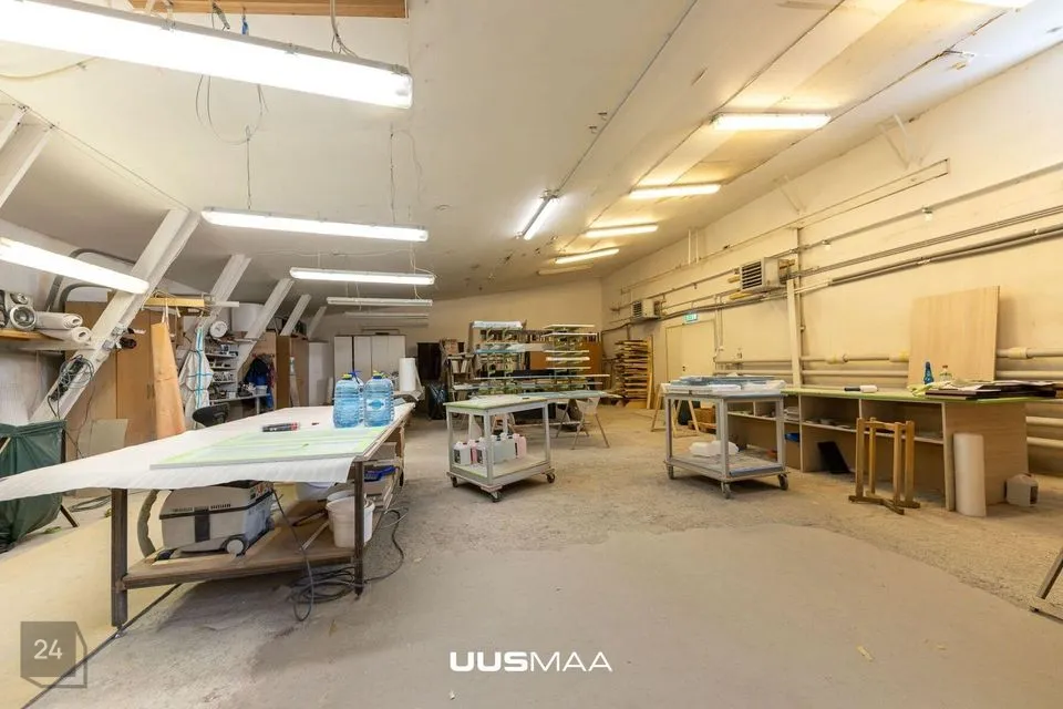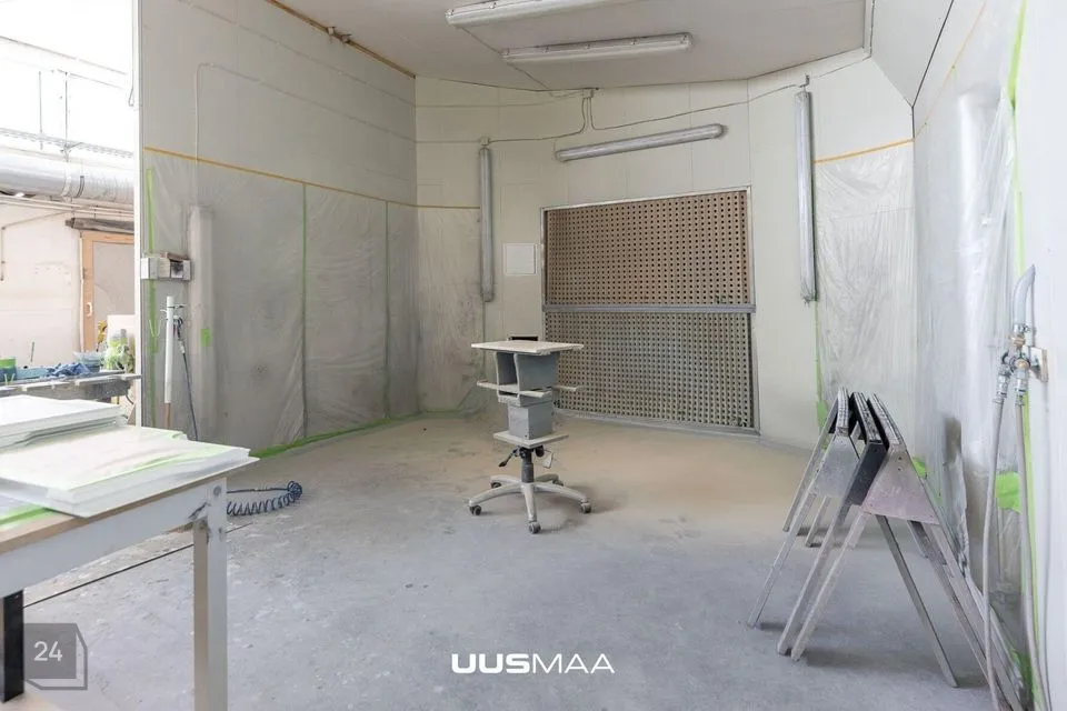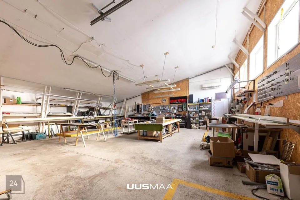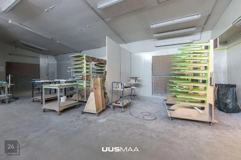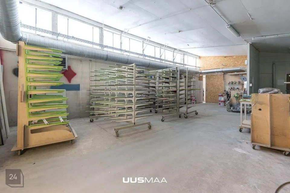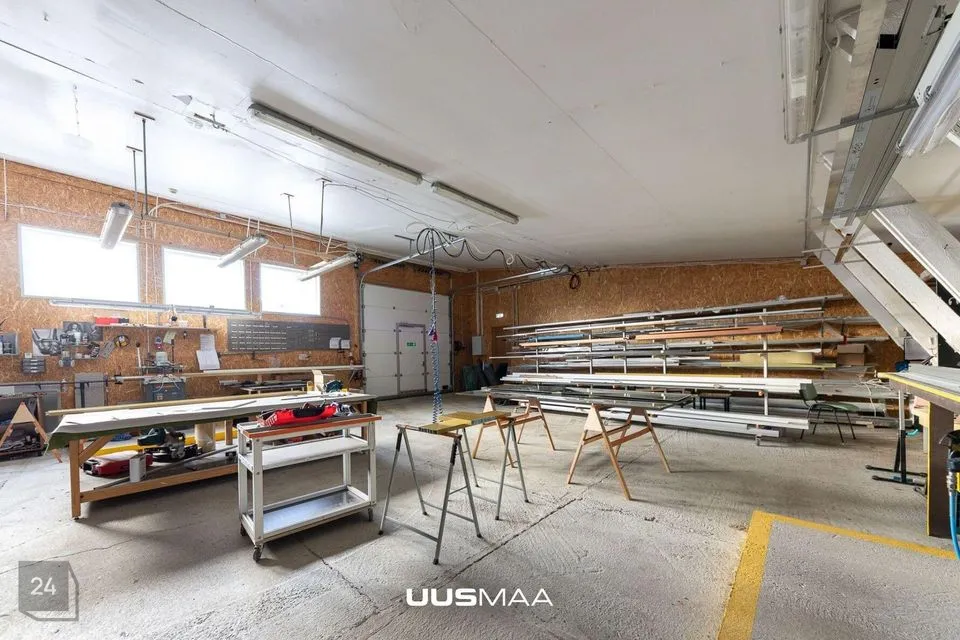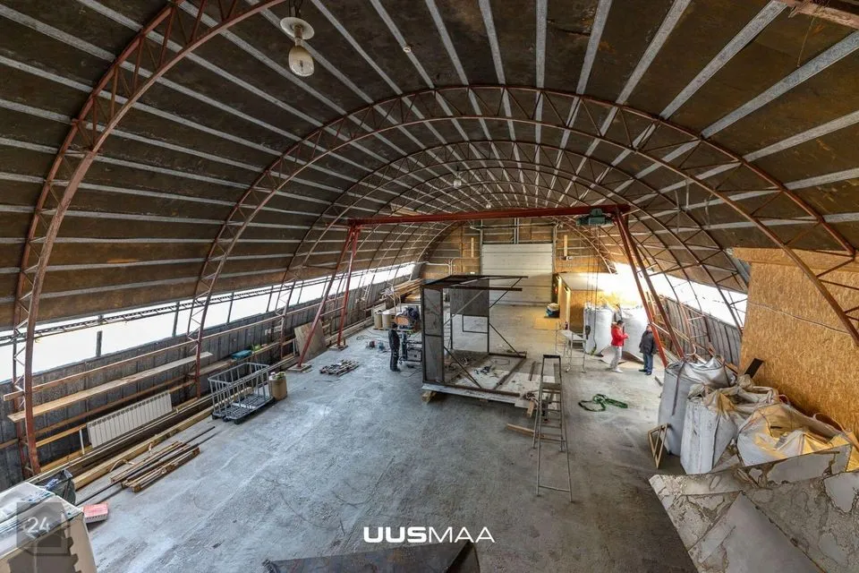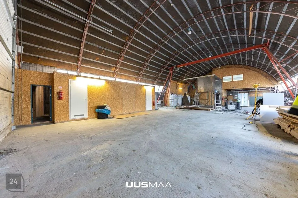 2) Kaarhall 460 m2, osaliselt soojustatud kohaliku tahkekütus-katlaga, 6 m vabakõrgust, 3-tonnise tõstevõimega telfer. Hoones asuvad nn mezzanin lahendusega bürooruumid.