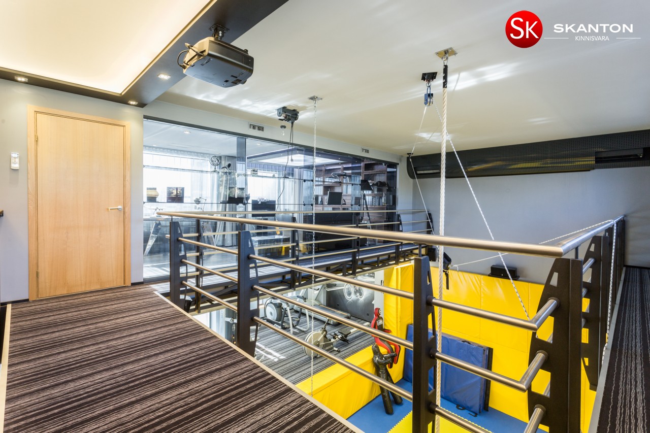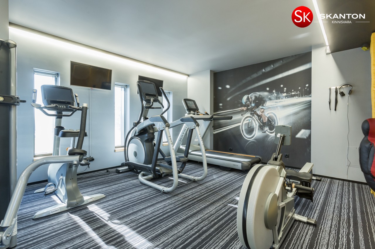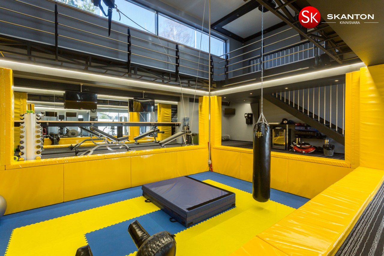 The first floor houses the following rooms: the gym that reaches through two storeys and features a boxing square as well as different exercise machines; a guest bedroom with a bathroom and a toilet; a living room with a karaoke system and full length windows; a sauna that can be heated using wood or electricity; wash room; massage room; toilet; a small kitchen; cocktail room and the wine cellar. The storage rooms and garage are also located on the first floor.