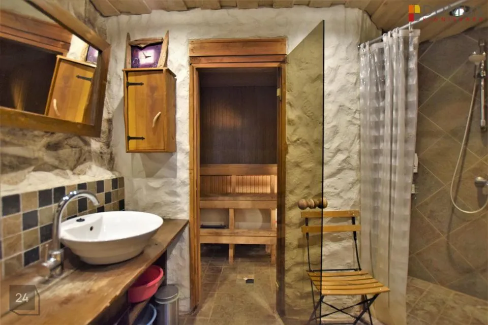 Maakivist ja rookatusega peahoone sarnaneb stiililt inglise maamajaga. Viimistluses rohkelt kivi ja krohvi, rasked tumedad talad ja suur kamin, annab eluruumile hubasuse. Magamistubade heledad seinad on dekooritud tumedate taladega, natuke lillemustrit ja veidi pitsi....