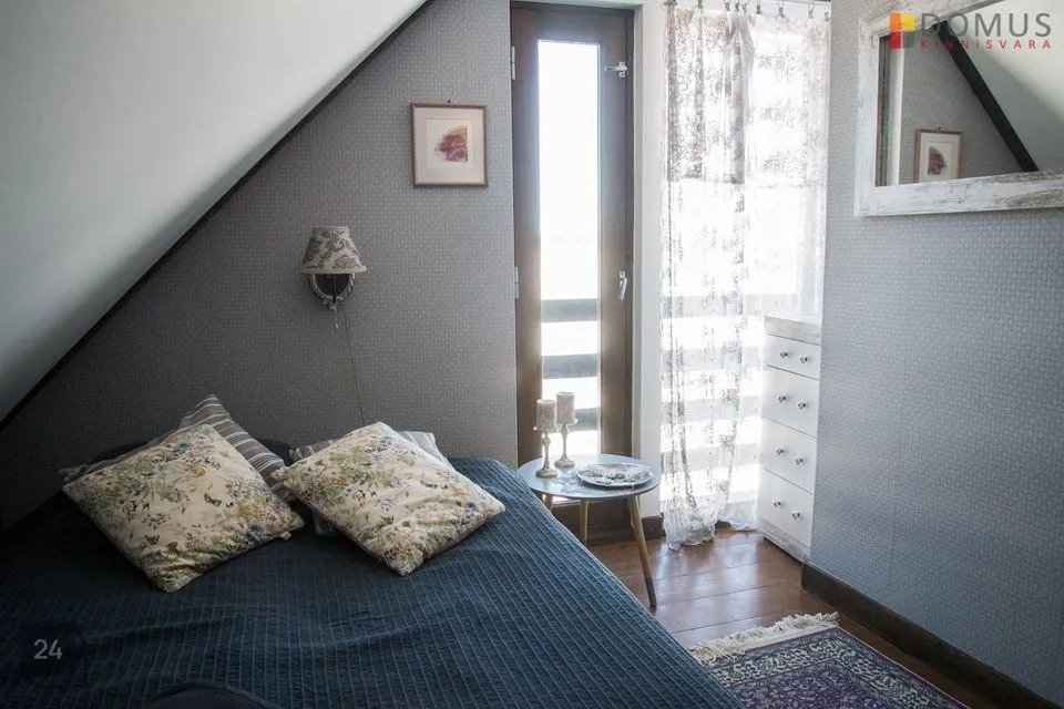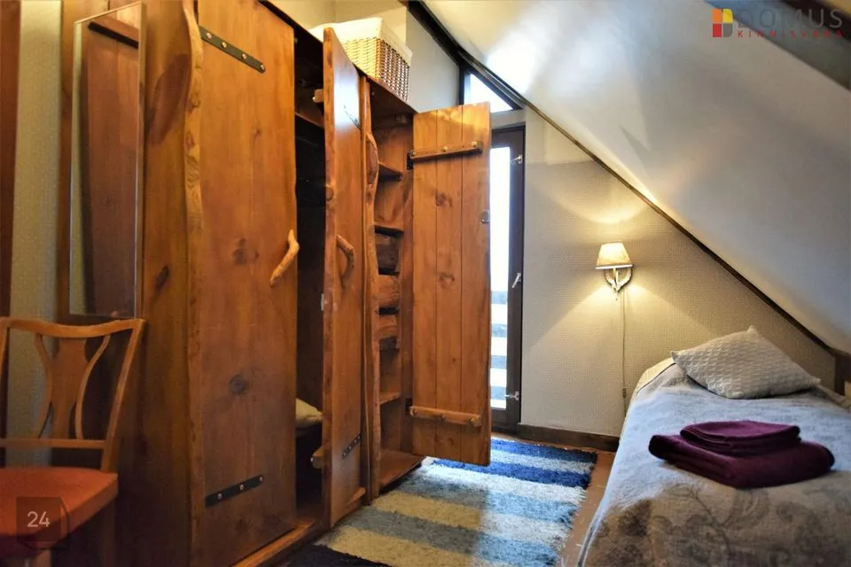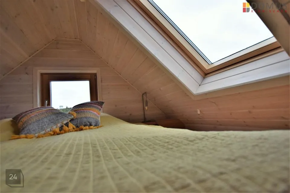 Maja esimesel korrusel paikneb isikupärase puitmööbliga sisustatud poolavatud köök, muidugi veel ruumikas elutuba, pesuruum, saun ja tualett, väike trepialune panipaik majapidamistarvikute tarvis. Elutoast viib trepp teise korruse tubadesse. Siin on kolm eraldi magamistuba ja tualettruum. Peamagamistoast pääseb rõdule, kust avaneb imeline vaade merele. Rõdu on avatud päeva/õhtupäikese suunas.