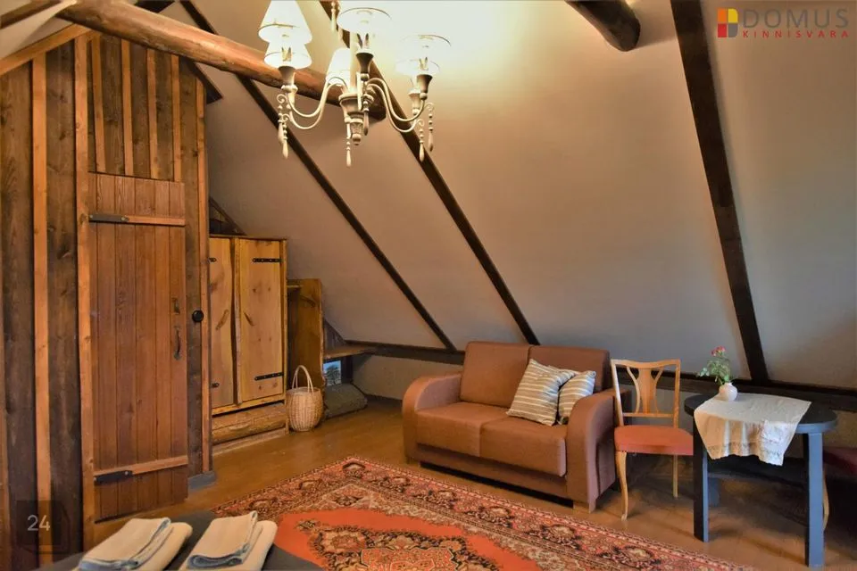 Kinnistult leiab veel toreda saunamaja ja väikese puhkemaja. Mõlemad ehitised alla 20 m2, peamajast eemal, privaatsuses. Terrassiga väikemaja sisaldab miniköögiga tuba ja väikest pesuruumi dušši ja tualetiga. Treppredelilt pääseb katusealusesse magamisasemele.