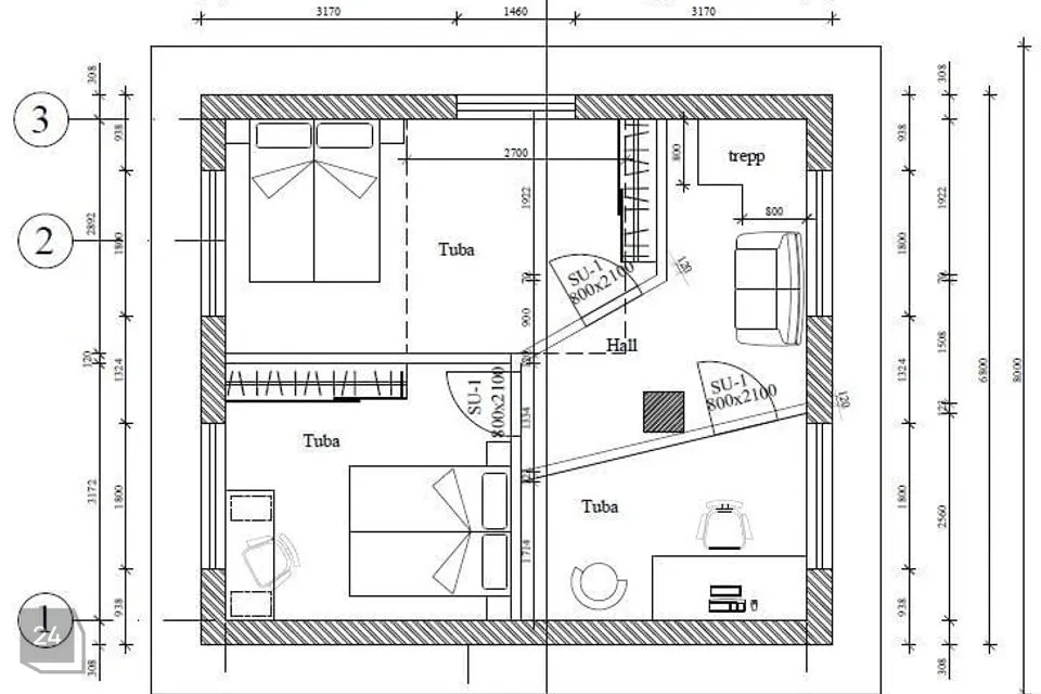 II korrusel: 3 magamistuba , trepihall.