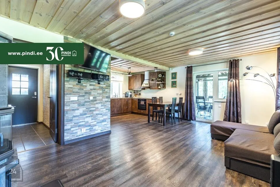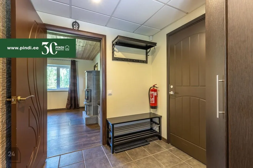 - 1. korrusel on koridor, milles asub ka kapp pesumasina ja kuivatiga, katlaruum (kütteks õhk-vesi soojuspump), avar köök-söögituba-elutuba, WC/dushiruum, puusaun.