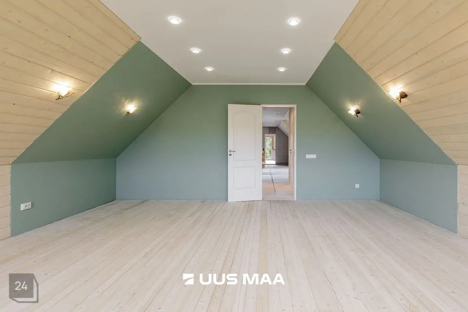 Projekti järgi asub teisel korrusel suur avar elutuba ja kolm magamistuba, samuti eraldi toana garderoob, vannituba ja WC. Kõik seinad on pahteldatud, osaliselt kaetud puidust voodrilauaga. Põrandatele paigaldatakse igale poole puidust kate. Kogu elektrijuhtmestik on uus ja veetud eraldi igasse tuppa. Valgustus on olemas, samuti paigaldatakse vannituppa keraamilised plaadid ja dušikabiin.