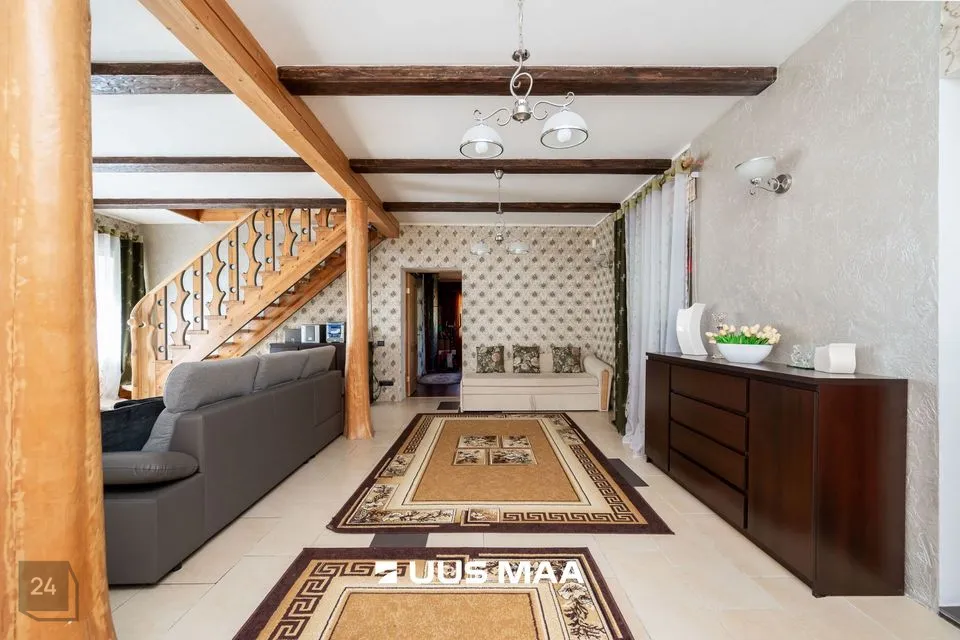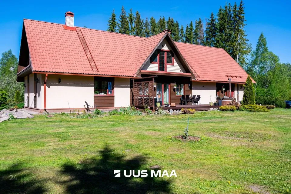 See kaunis eramu on valminud aastal 2012. Maja on ehitatud vundamendile, seinad on Fibost ja osaliselt telliskivist mis tagab hea heliisolatsiooni. Eluruumide pindala 290 m². Maja esimesel korrusel on 2 magamistuba, garderoob, avar elutuba, eraldi köök, sauna, vannituba, WC tuba ja sanitaar tuba.
