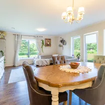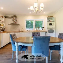 Majas on kasutatud kvaliteetseid siseviimistlusmaterjale. Eluruumides katab põrandaid vastupidav laminaatparkett, suurema koormusega aladel on kasutatud keraamilisi plaate.Avar elutuba-köök on kodu süda – ruumikas ja valgusküllane ala, kus saab nautida nii õhtusööke kui vaba aega pere või sõpradega.