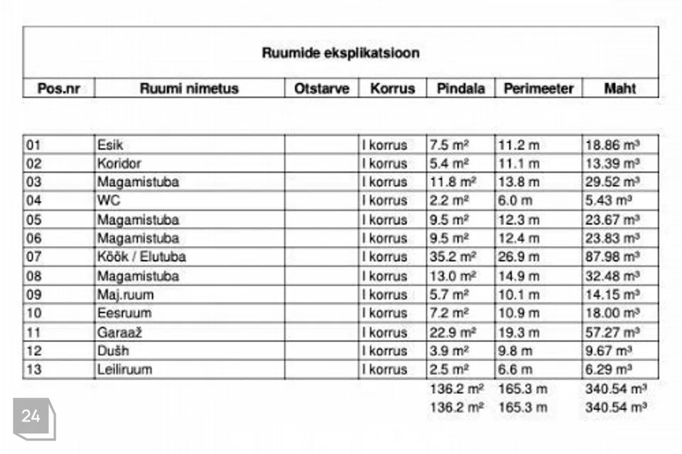 Maja elemendid on projekteeritud ja toodetud Eesti kogenuima majatootja Mateki poolt. Katusekatteks on katusekivi ja fassaad kaetud laudisega.
