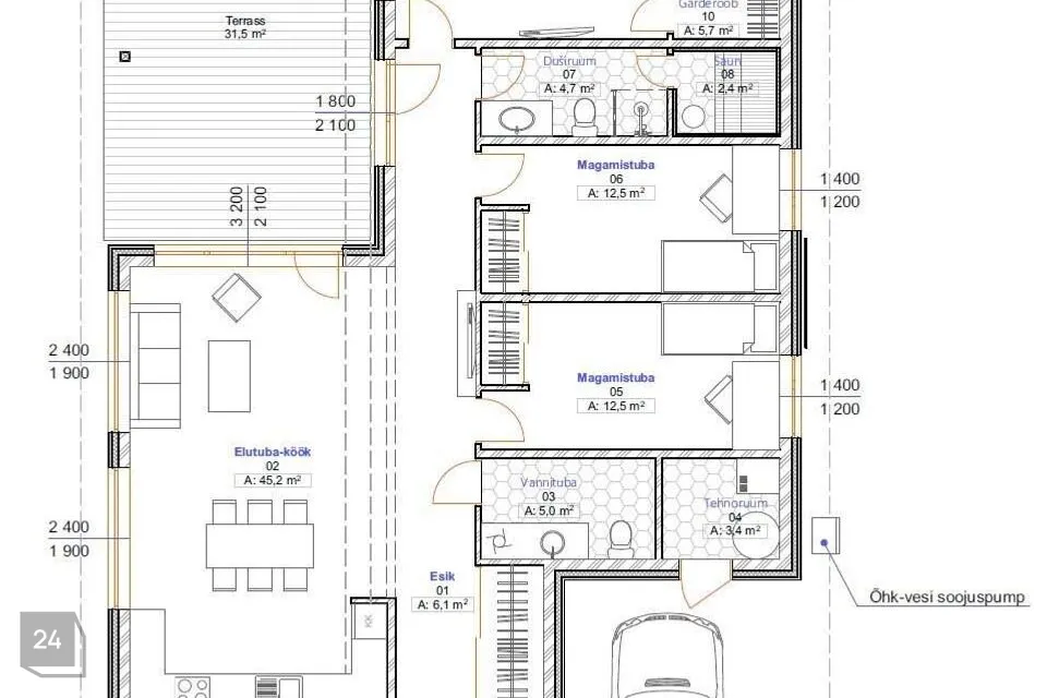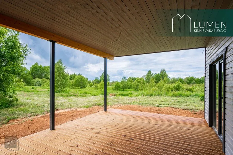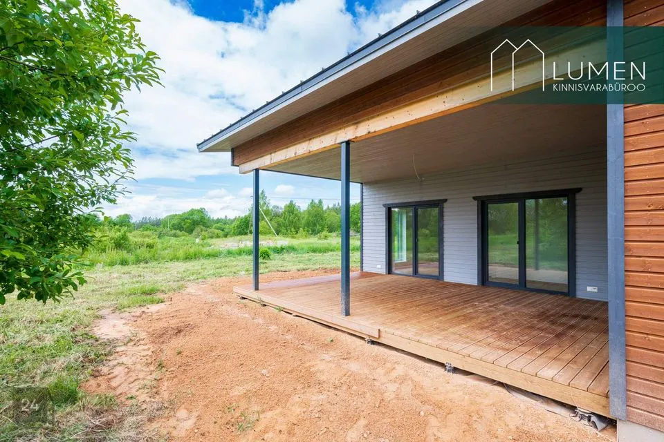 Maja muudab eriliseks avarus ja valgusküllasus, mida pakuvad suured elutoa aknad ning katusega terrass, kus saab mõnusasti aega veeta. Lisaks on maja ees kiviparketiga varjualune auto hoidmiseks. NB! Fotod on juba valminud identsest kõrvalmajast.