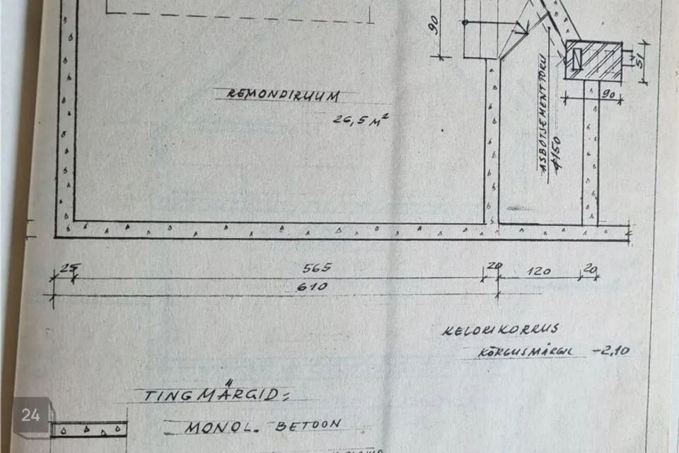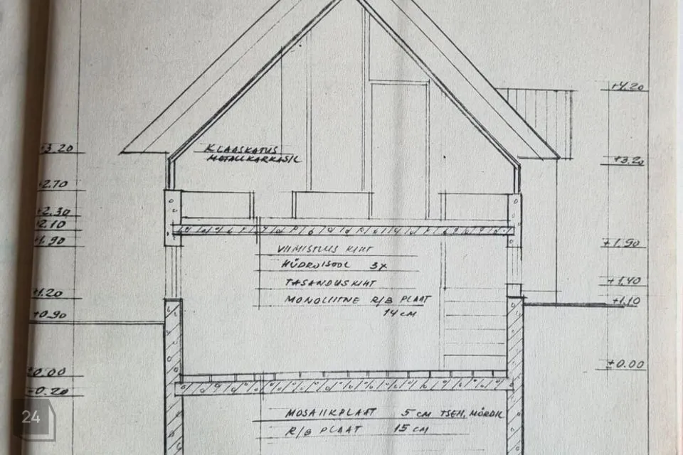 Keldris on betoonist põrand killustikalusel, korrustel põrandalaudadel (3,7cmm paksused).