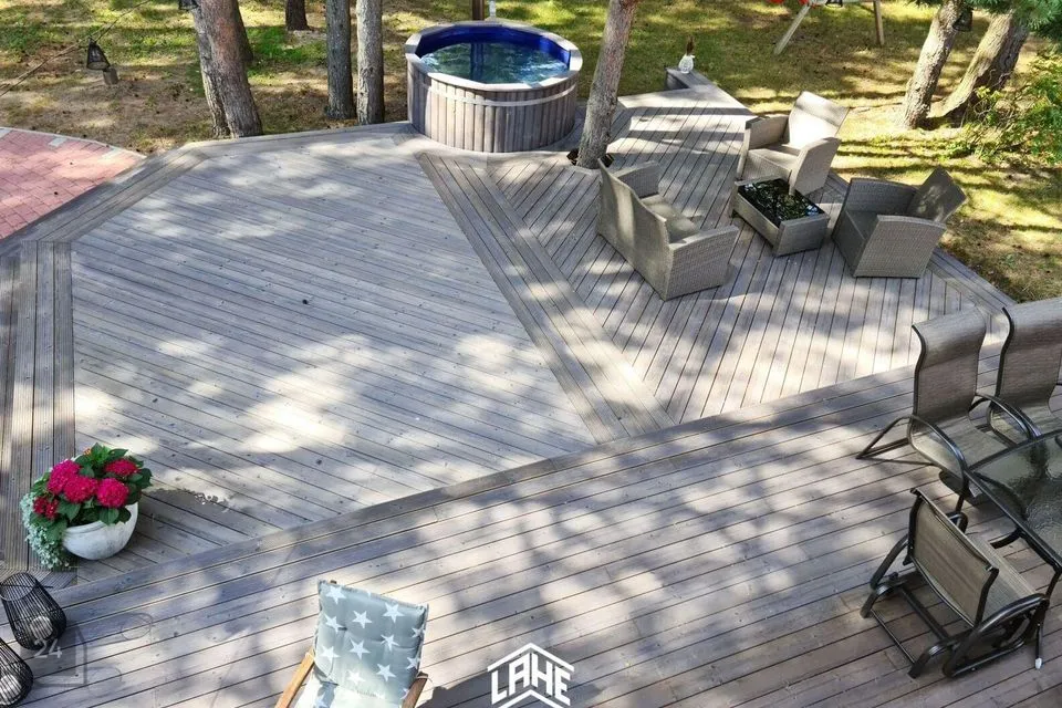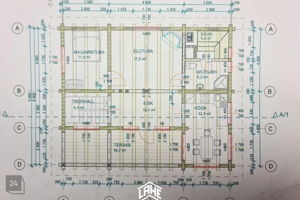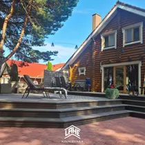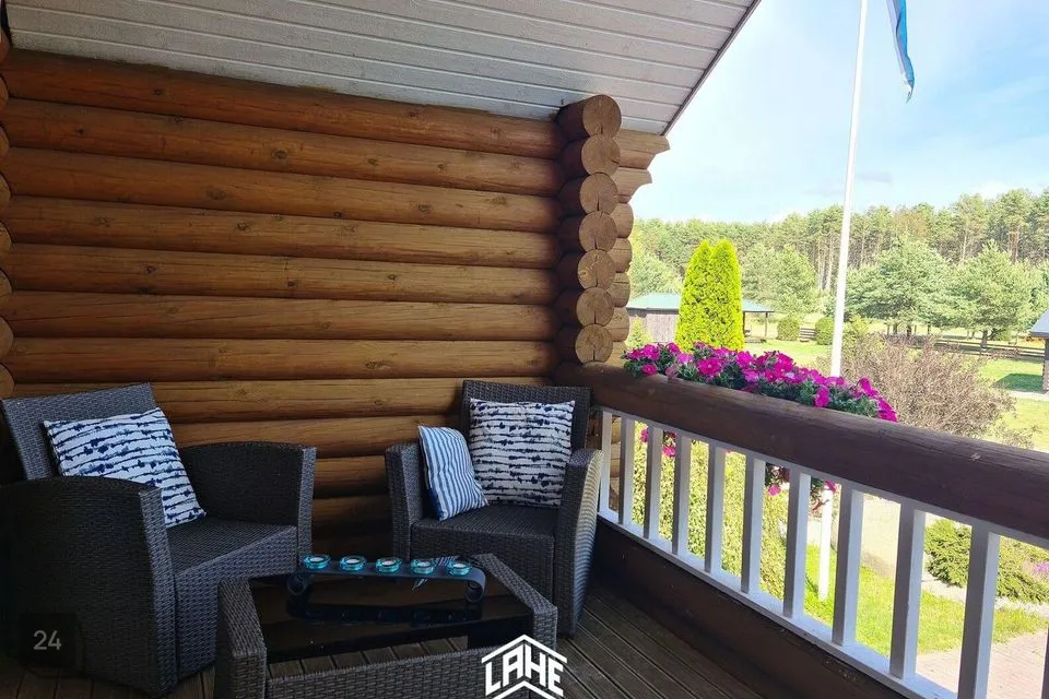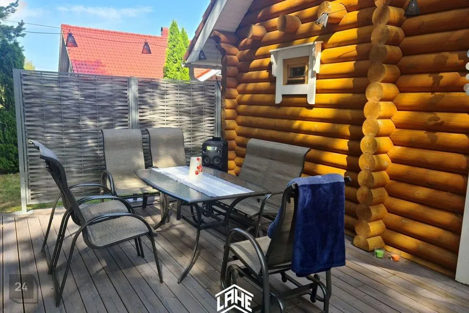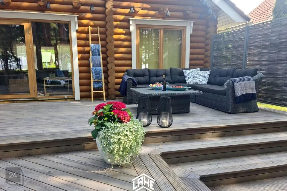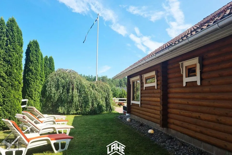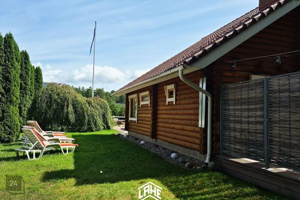 - palkmaja, mis sobitub keskkonda ideaalselt. Olemas on 3 magamistuba, elutuba, avar köök, WC, duširuum, trepihall,, rõdu, saun, esik ja terrass.
