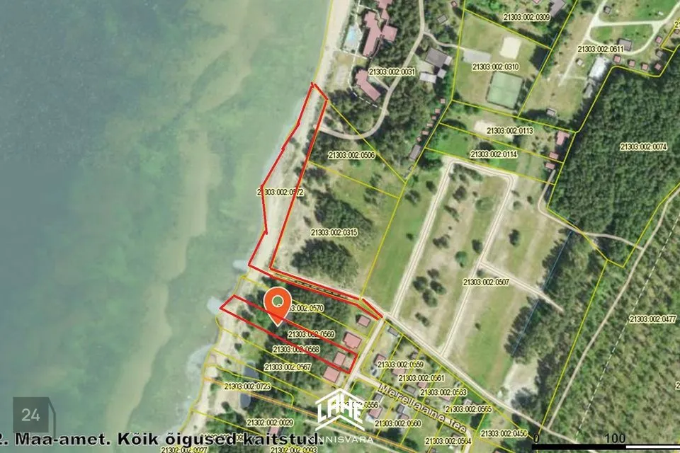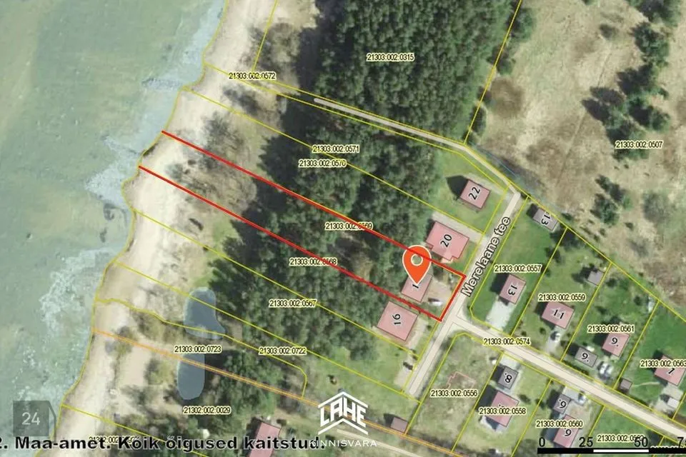 2. osa hoonestamata katastriüksusest tunnusega 21303:002:0572, mis on suurusega 5810 m2 ning see kuulub ühiselt 16 ühistu liikme omanikule (seega 1/16 kogu kinnistust on müüdava vara omanikul). Tegemist on MERERANNAGA (ligikaudu 200 m).