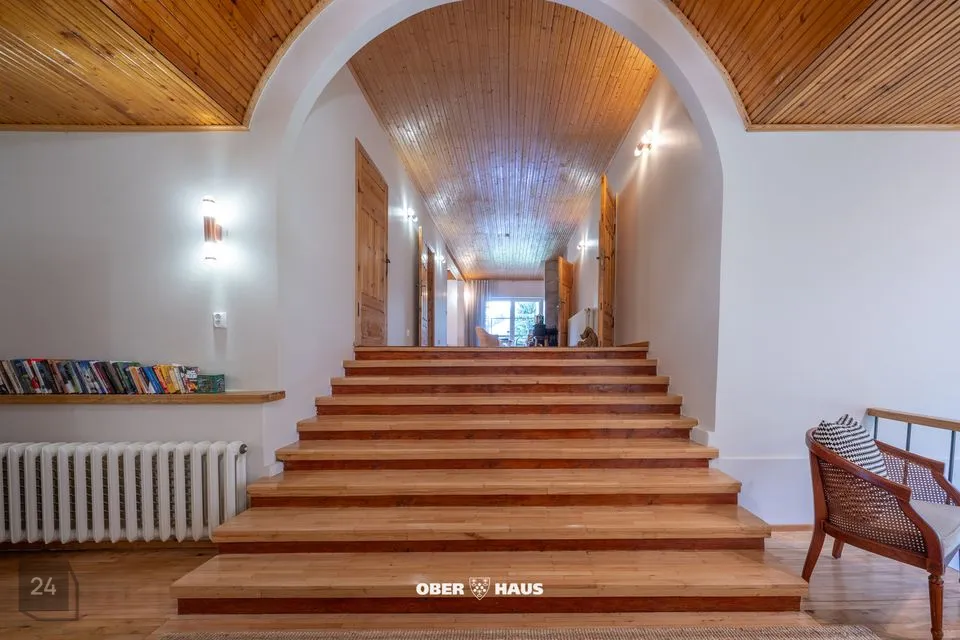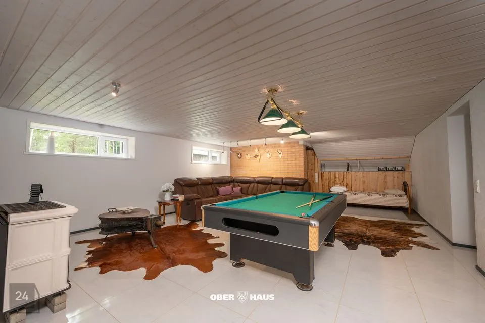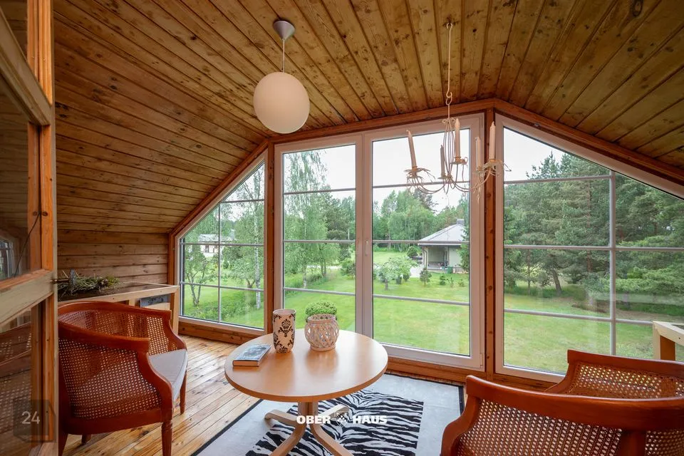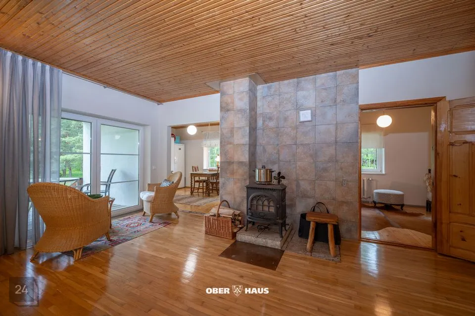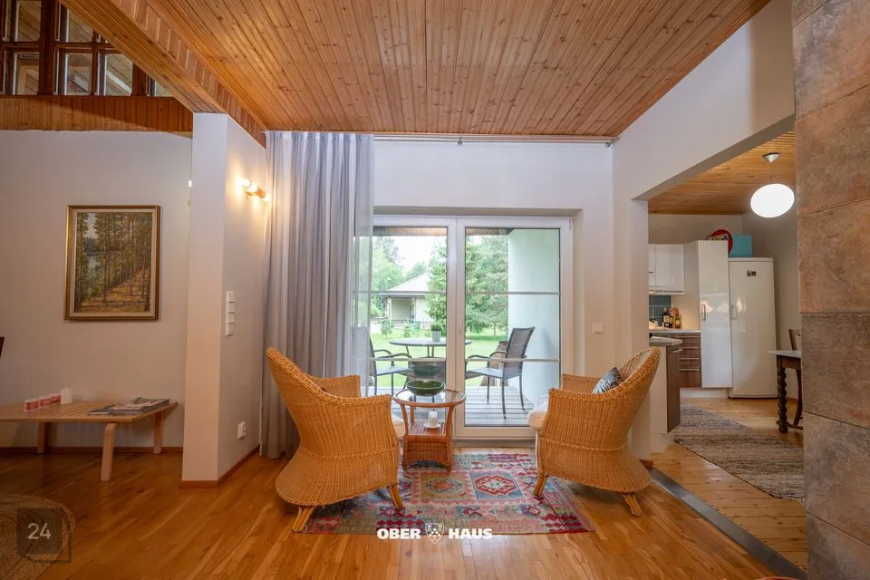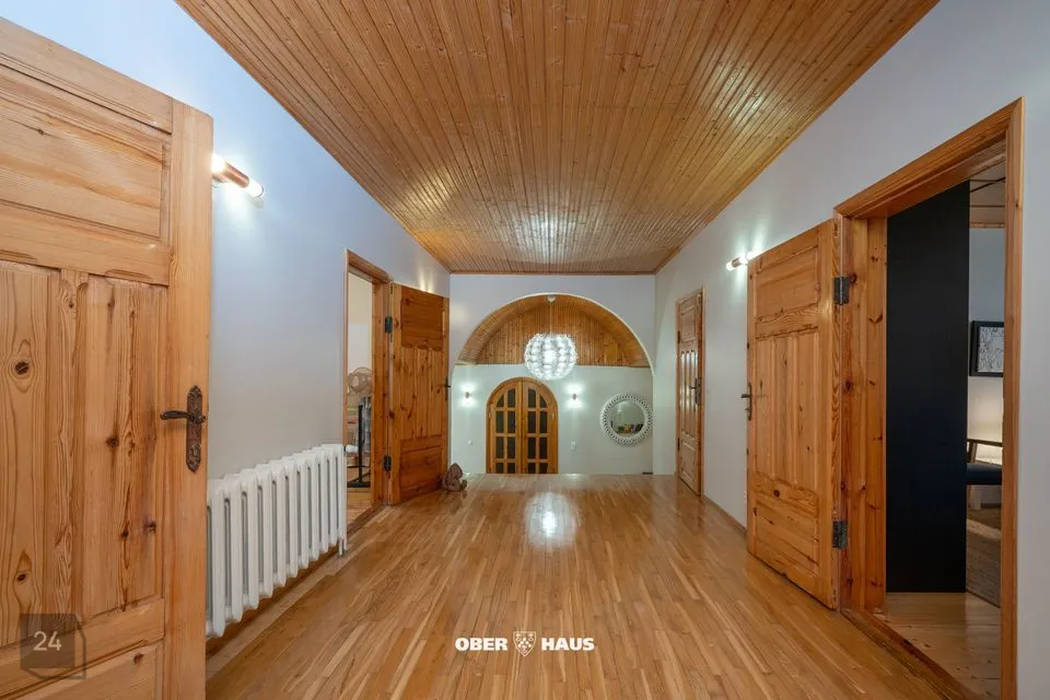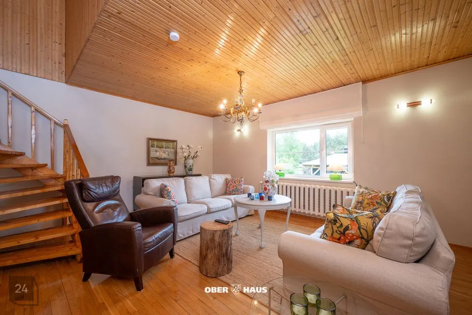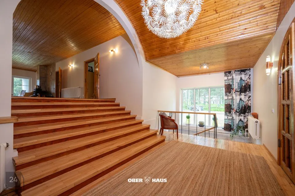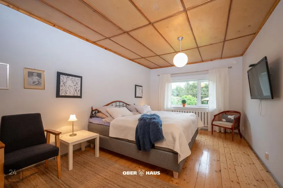 Maitsekalt sisustatud soojades toonides interjöör koos naturaalse puiduga loob rohkelt hubasust. Mugava planeeringuga ruumikas majas on 12 eluruumi, millest suisa 8 on magamistuba, elutuba ja köök on eraldi, lisaks majas olev saun, sauna eesruum, mitmeid garderoobe ja abiruume ning avar garaaž.