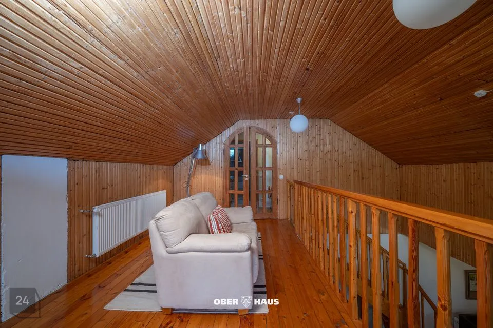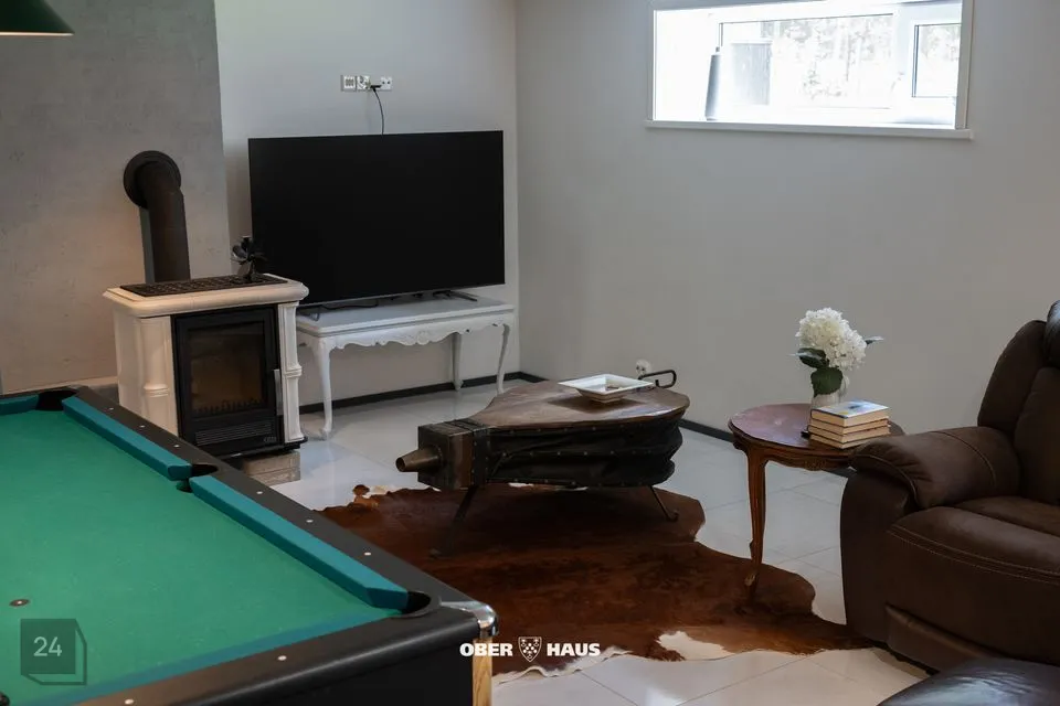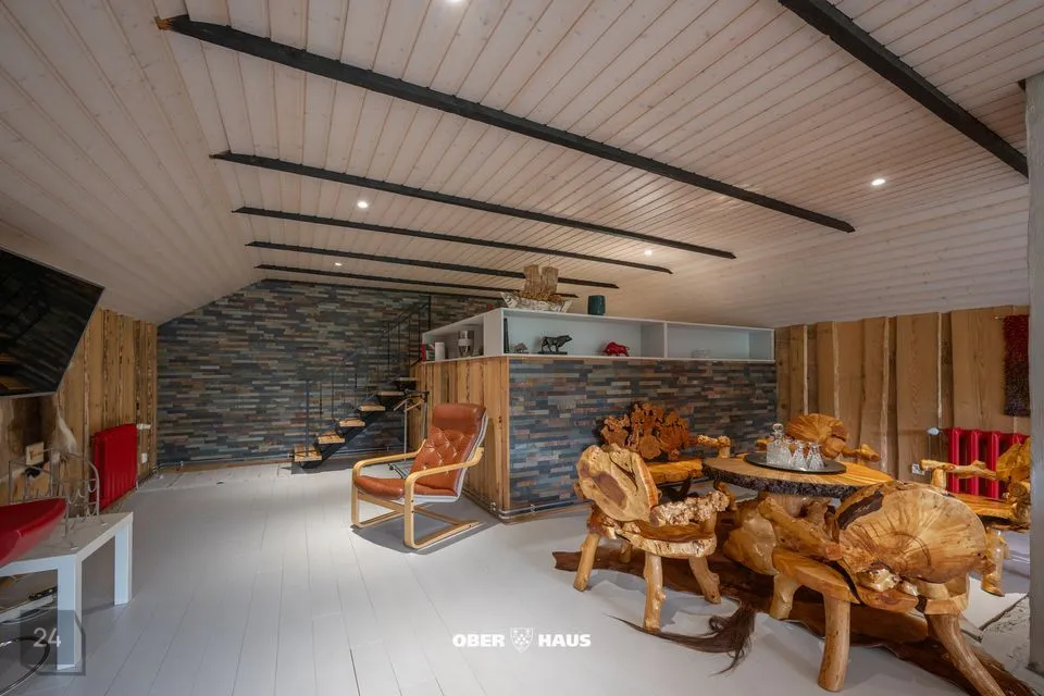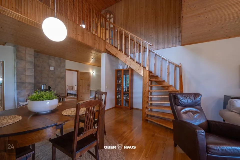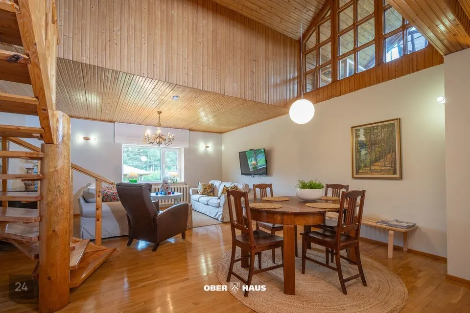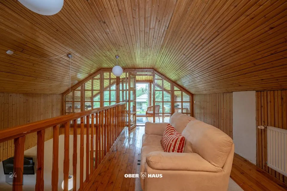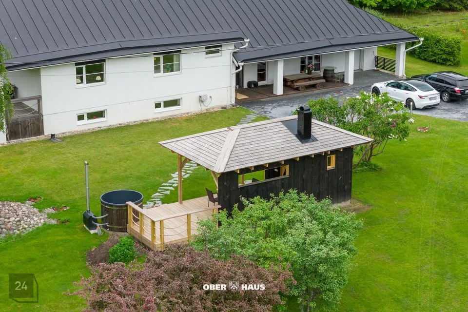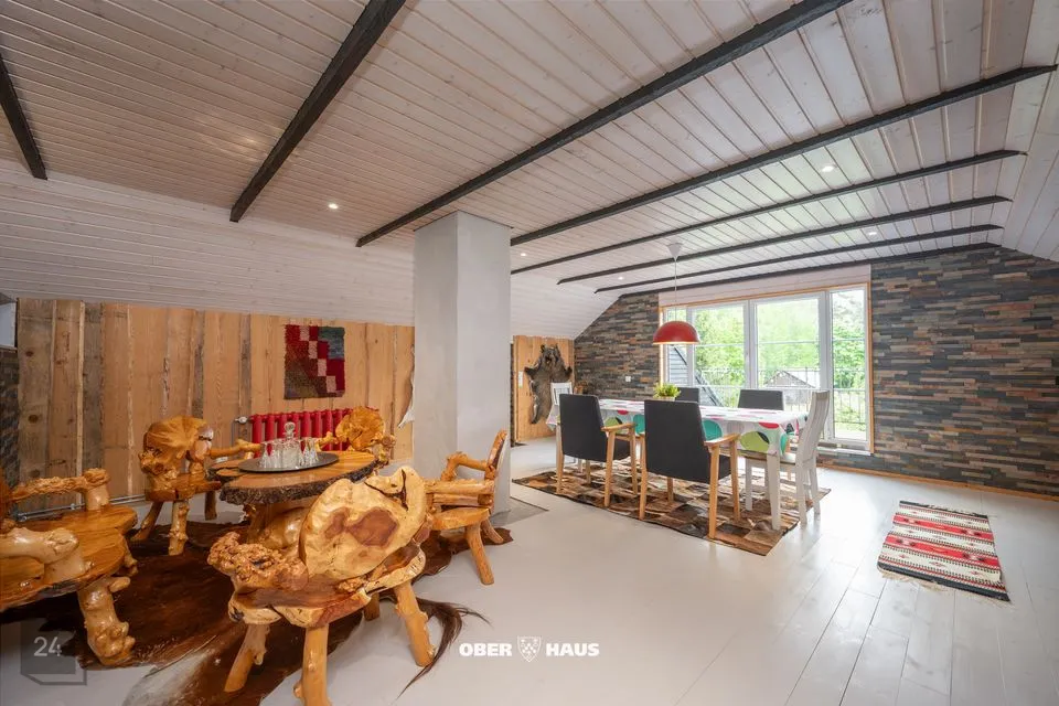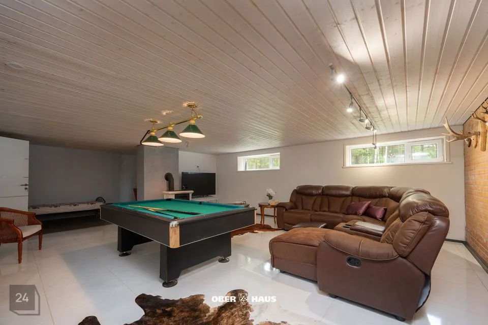 Maitsekalt sisustatud soojades toonides interjöör koos naturaalse puiduga loob rohkelt hubasust. Mugava planeeringuga ruumikas majas on 12 eluruumi, millest suisa 8 on magamistuba, elutuba ja köök on eraldi, lisaks majas olev saun, sauna eesruum, mitmeid garderoobe ja abiruume ning avar garaaž.