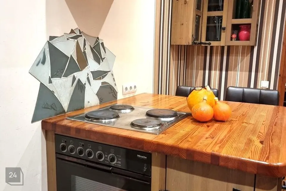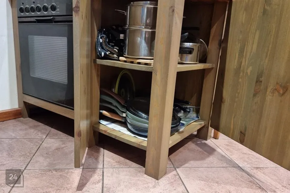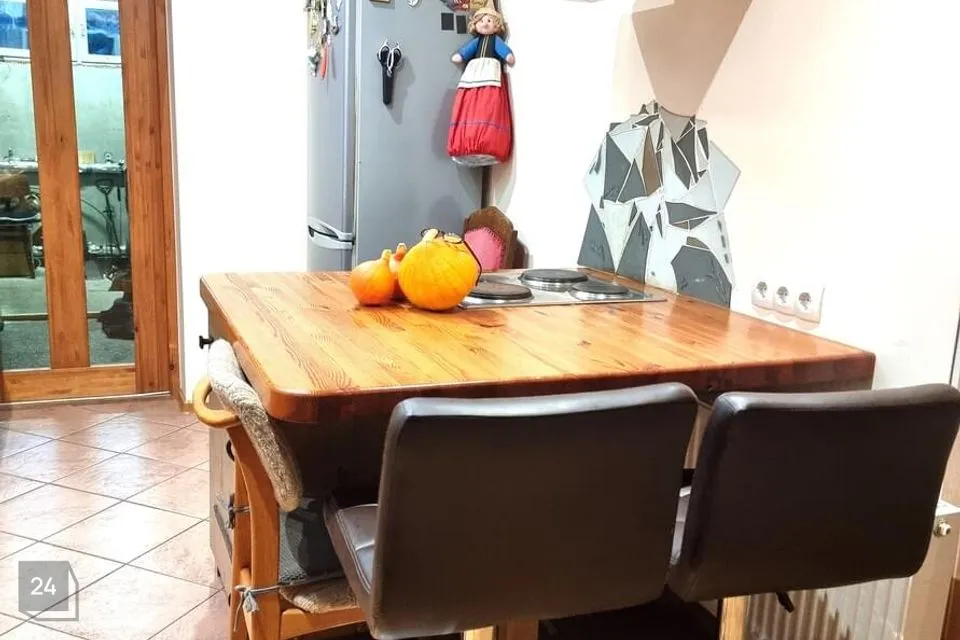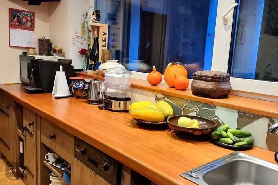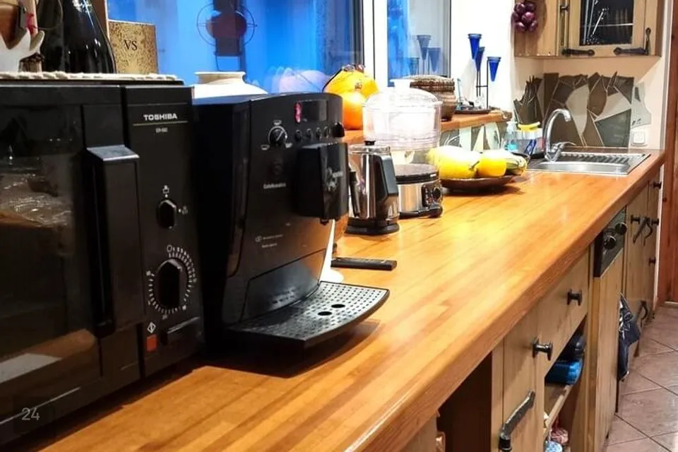 - Köök, kus on täispuitköögimööbel ja kaasaegne tehnika
