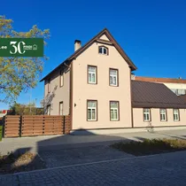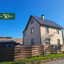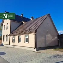 Elamul renoveeritud välisfassaad ja katus, paigaldatud Haapsalu Uksetehase puitpakettaknad, välisuks ja korterite välisuksed.