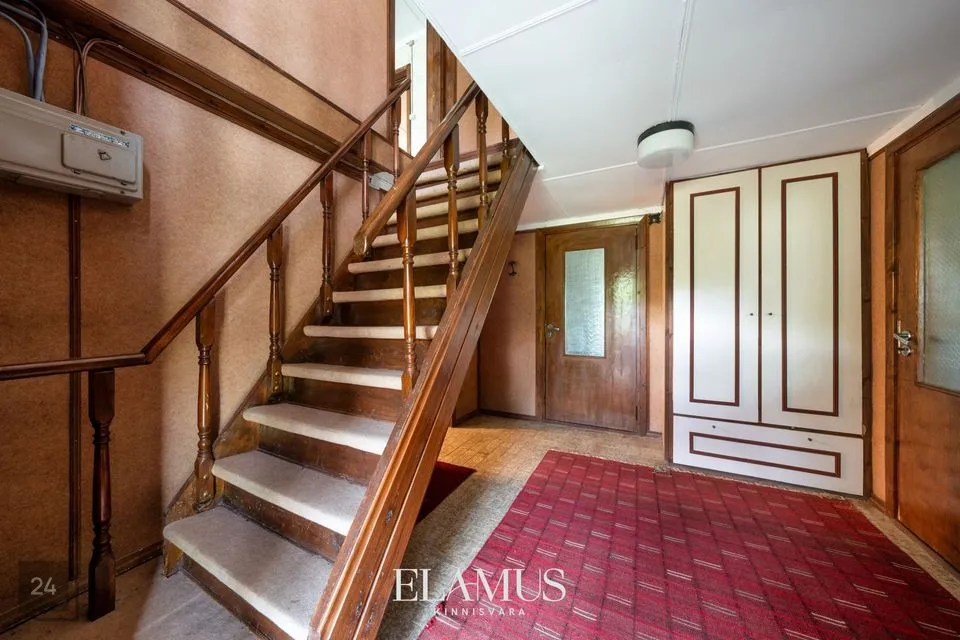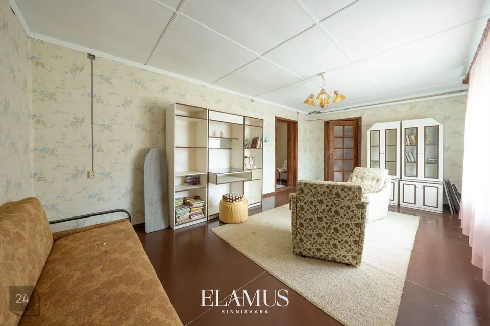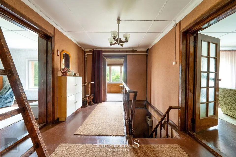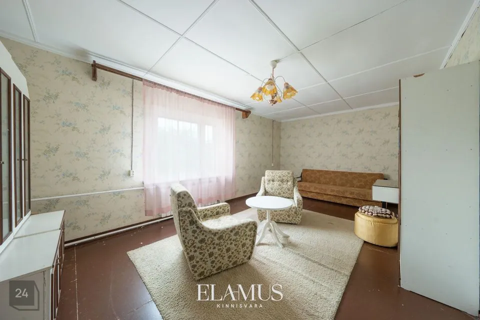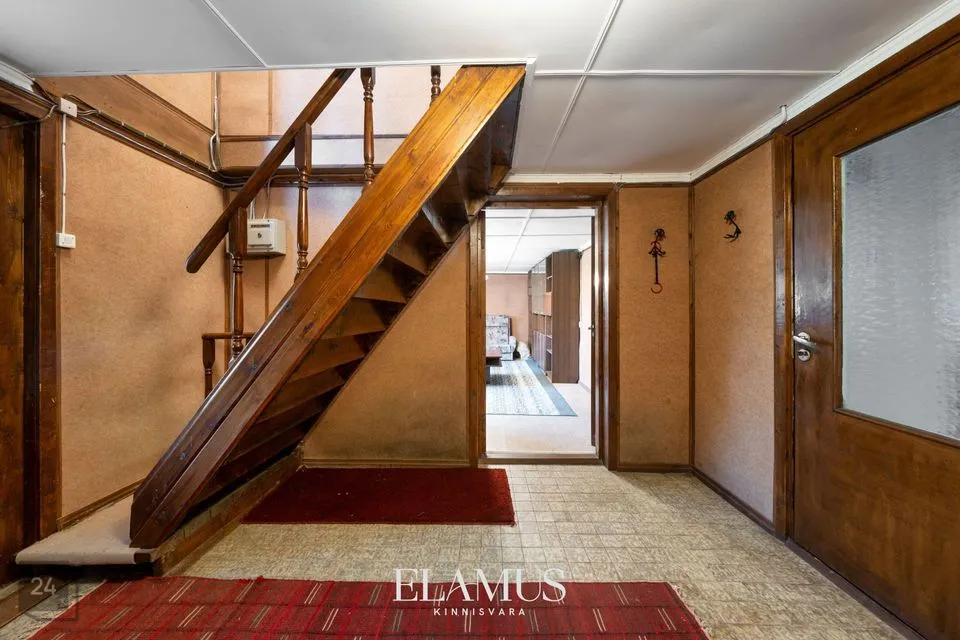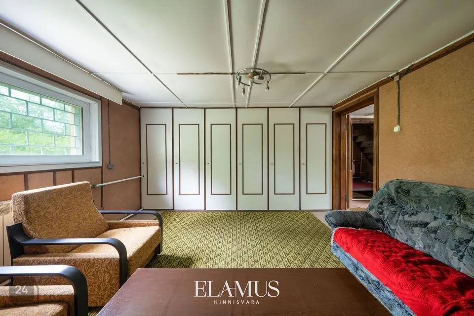 Maja esimesel korrusel on kaks suurt tuba, pesuruum ja katlamaja. Lisaks garaaž, kuhu pääseb nii väljast kui läbi toa.