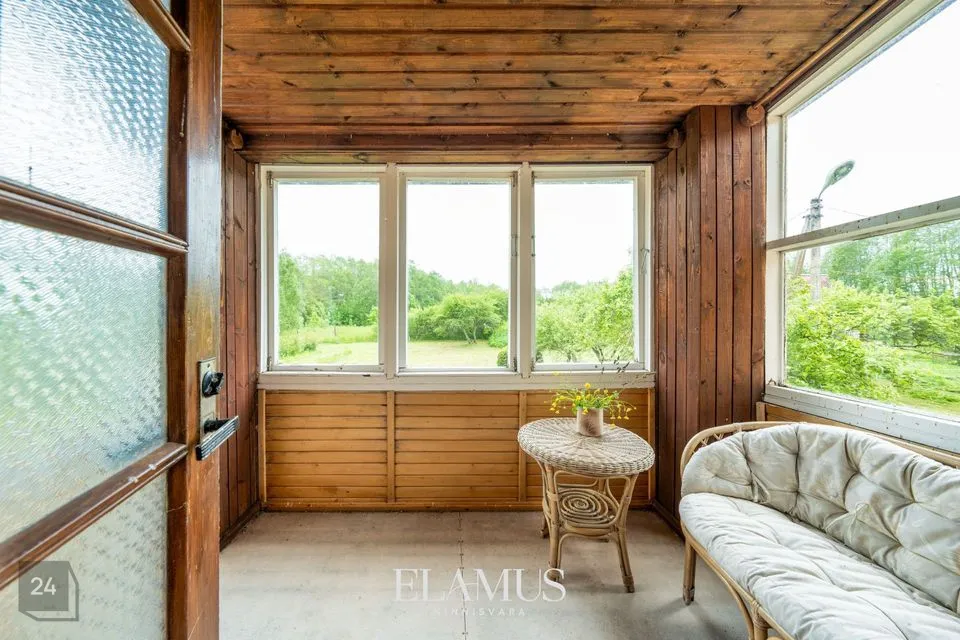 Eluruumide põrandad on kaetud värvitud saepuruplaadiga, pesuruumis on kasutatud keraamilist plaati. Aknaraamid puidust.