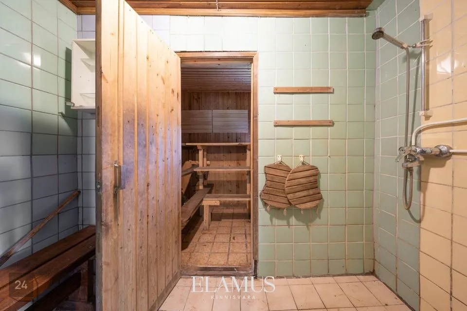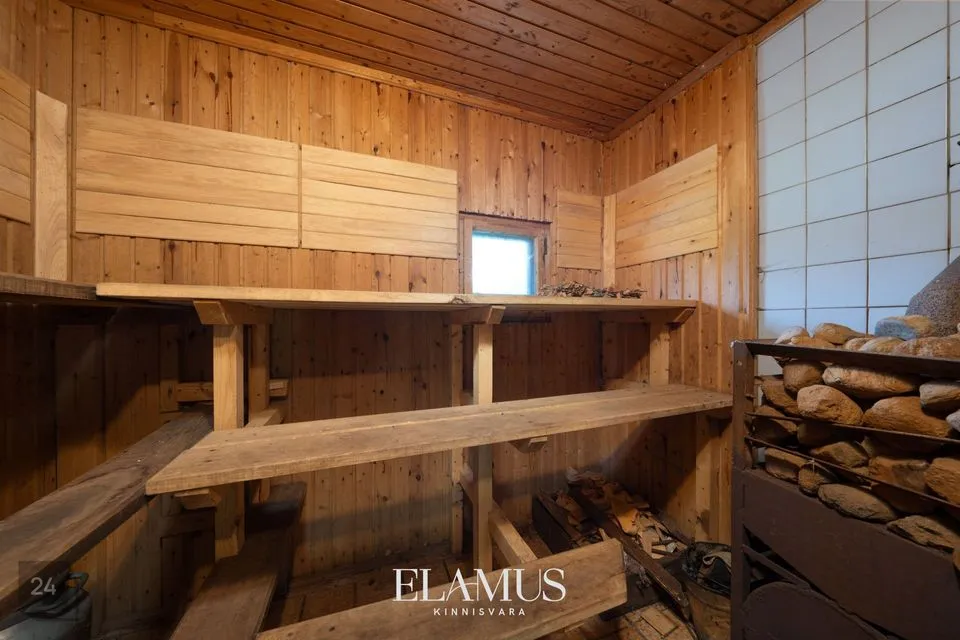 Saunamajas kamin + elektriboiler sooja vee jaoks.
