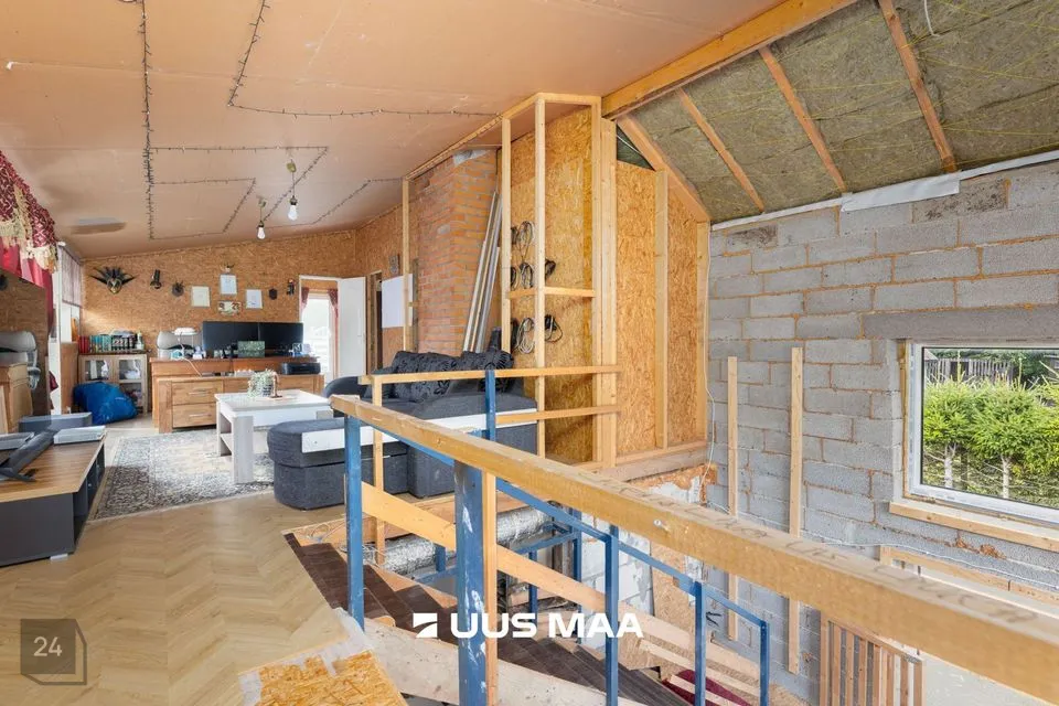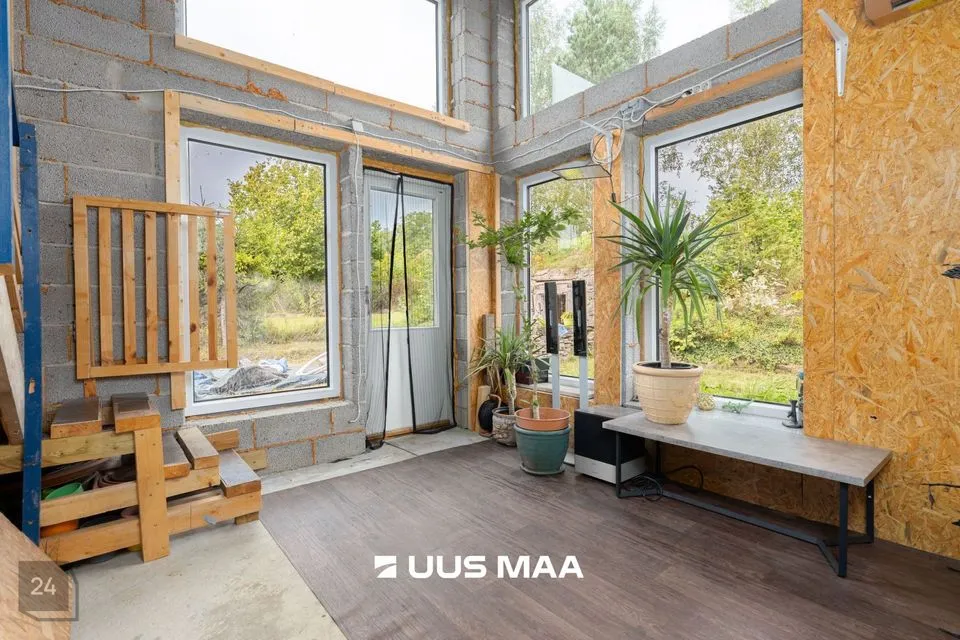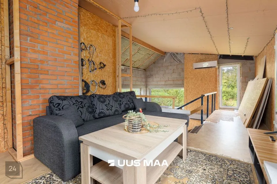 Maja on ehituse lõppfaasis – ostjal on võimalus oma äranägemise järgi lõpetada siseviimistlus (materjalid – OSB, põrandaplaadid, kivid jms – tulevad majaga kaasa). Ehitusprojekt ja -luba on olemas.