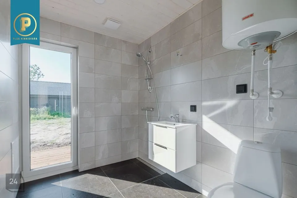 Pakutav maja koosneb kahest hea suurusega magamistoast, WC / duširuumist. Lisaks teeb eriliseks pakutava maja pea tervet otsaseina katvad aknad ja avara aatriumiga elutuba / köök.