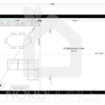 Pakutav maja koosneb kahest hea suurusega magamistoast, WC / duširuumist. Lisaks teeb eriliseks pakutava maja pea tervet otsaseina katvad aknad ja avara aatriumiga elutuba / köök.