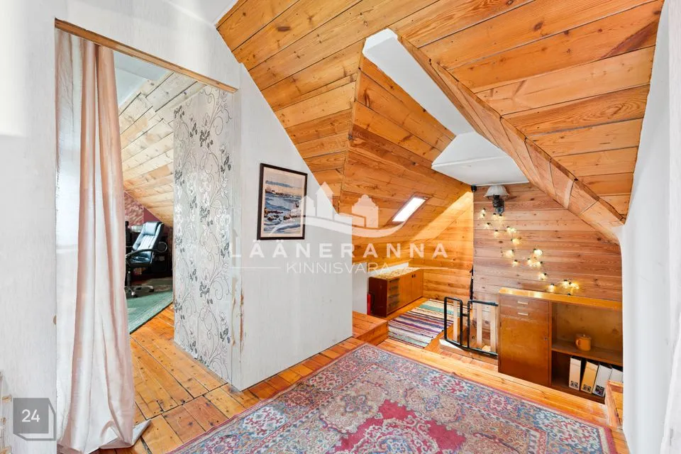Teisele korrusele viib esikust puidust trepp, kus avaneb omapärane esik, millest saab eraldi nelja tuppa ning ühte panipaika.