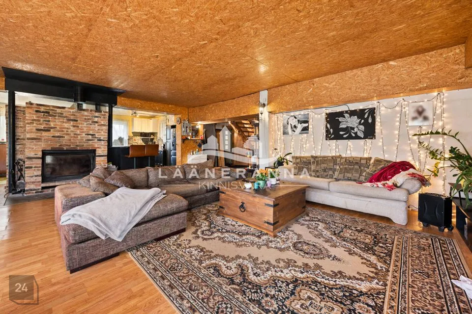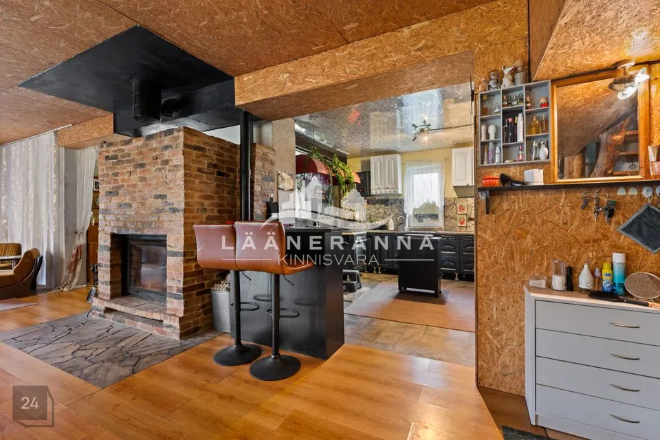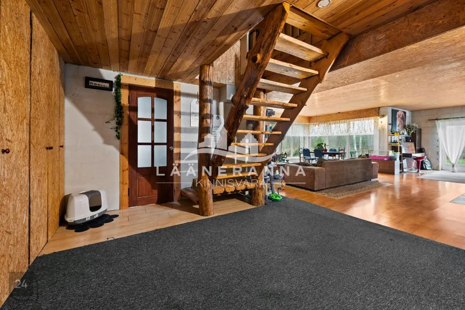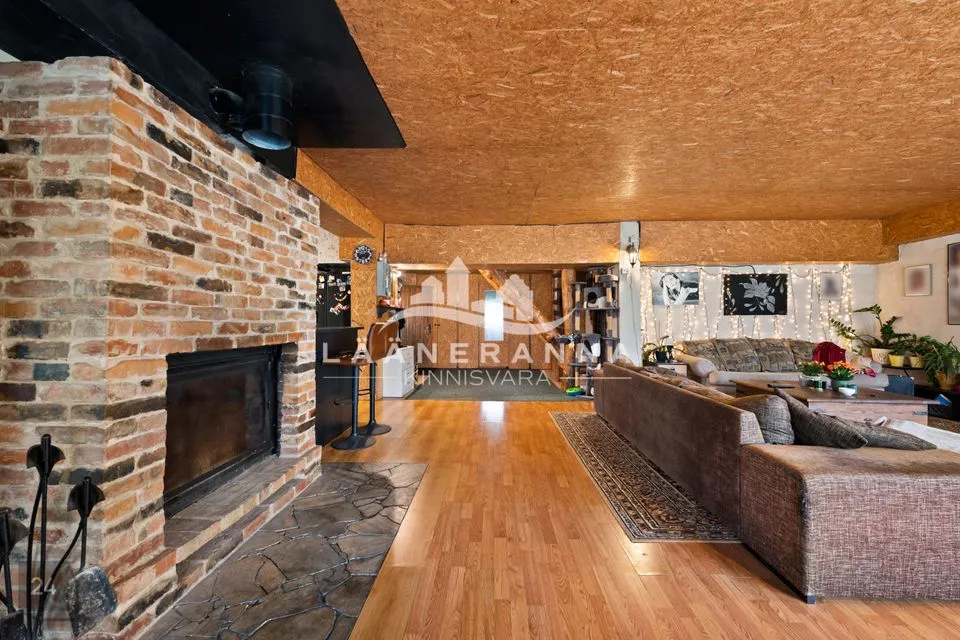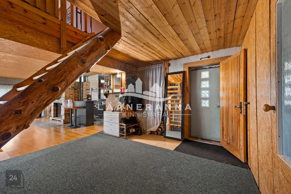 Esimesel korrusel on avar esik ja väga avar elutuba, millest saab liikuda terrassile! Elutoa keskel on suur kamin, mille kõrval on köök, väiksem avatud tuba, vannituba ja mitmed panipaigad.