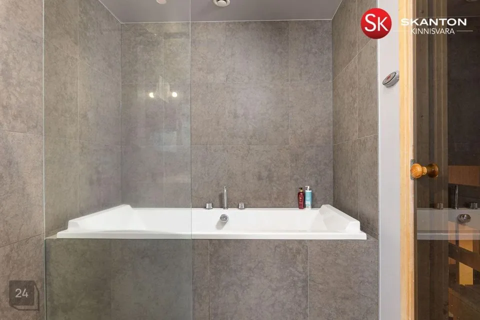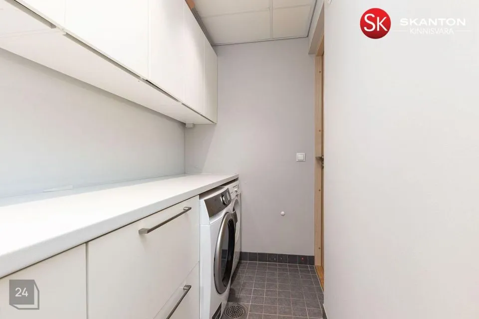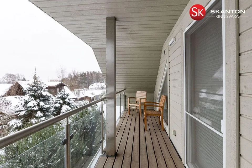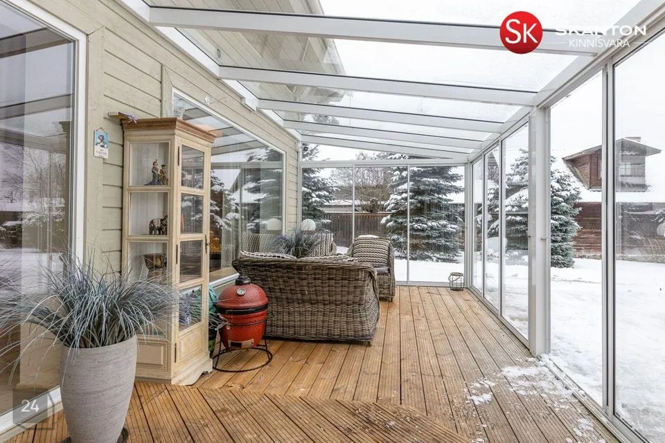 Elutuba avatud köögiga, kokku 80m2. Esimesel korrusel veel lisaks elutoale avar esik, sisse astutava garderoobiga, tualett, vannituba vanni, dušši ja saunaga. Teisel korrusel 4 magamistuba, dušš ja tualett. Pea magamistoa kõrval on avar sisse astutav garderoob. Väiksemates magamistubades sisseehitatud kapid. Külaliste magamistuba on klaas seina ja klaasist lükanduksega suletav.