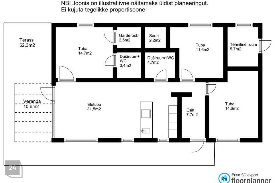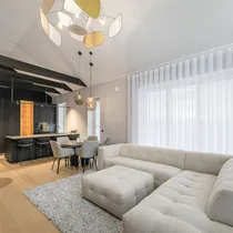Nutikas planeering hõlmab kolme ruumikat magamistuba, kahte vannituba. Tubadest koos sisseehitatud garderoobidega igaühest õhkub rafineeritud lõõgastuse ja privaatsuse aurat. Avatud planeeringuga elutoa ja köögi kontseptsioon pakub kutsuvat ruumi külaliste võõrustamiseks või lõõgastumiseks oma kodu rafineeritud mugavuses. Elutoa pikenduseks on lükandklaasidega terassi osa, mil ilmastik ei sega nautida õhtusööke või grillimist. Luksuslikkuse tipp on privaatse vannitoa ja sisseastutava gardroobiga peamagamistuba.
