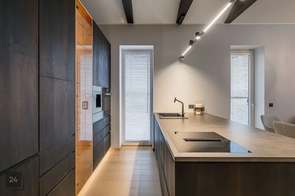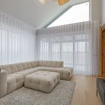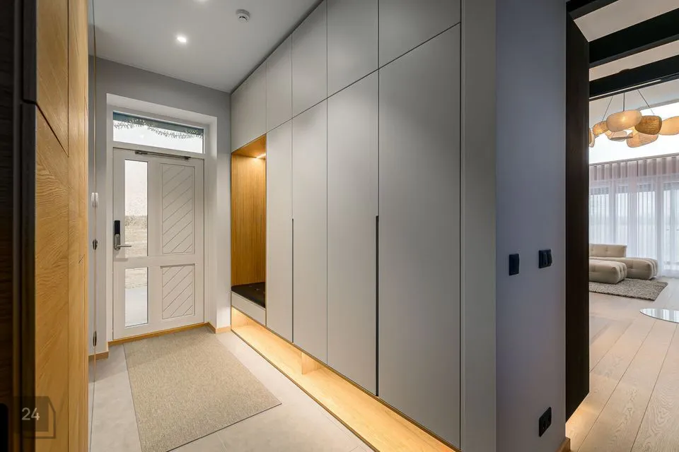 Selles majas on juba olemas integreeritud köögimööbel ja garderoobikapid, pimendavad kardinad või muud aknakatted ja valgustid. Sisekujundus on laitmatu maitsega ning harmoonilise seguga küllusest ja funktsionaalsusest. Maja on uus, äsja valminud. Ehk Sa saad olla esimene, kes uut ja värsket kvaliteeti saab nautida! Ajatu ilmega eritellimus mööbel. Köögimööbel koos saarega, kus on integreeritud tehnika - nõudepesumasin, külmik sügavkülmaga, Bora induktsioon pliit pliidi sisese õhupuhastajaga, pürolüüsiga ahi, köögimööblis viipega LED valgustused. Sisseehitatud garderoobikapid magamistubades ja esikus, pimendavad kardinad ja valgustid tubades. Garderoobikapid valgustusega. Mõnus klaasitud terrass liigutatavate klaasidega on tõeline elutoa pikendus valgete õhtute nautimiseks. Terassile pääs puitalumiinium lükandliug avaneva akna kaudu.