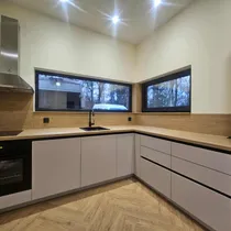 2025. aastal valminud 79 m² suurune kodu on läbimõeldud planeeringuga – avatud elutuba koos kaasaegse köögiga loob avara ja hubase atmosfääri. Köök on täielikult möbleeritud ning varustatud kvaliteetse tehnikaga. Ehitisealune pind on 113 m².