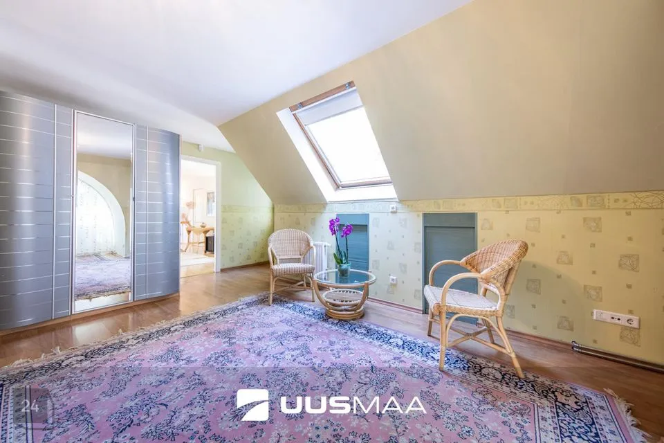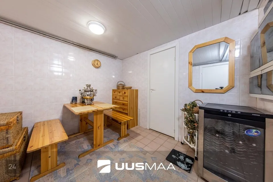 1997. aastal valminud elumajas on palju avarust ning ruumi kõigile. Esimesel korrusel paiknevad avar ja kvaliteetse köögimööbli ning -tehnikaga köök itaalia firmalt Camel, kaminaga elutuba, kabinet, kaks kinnist verandat ning sanitaarruumid.