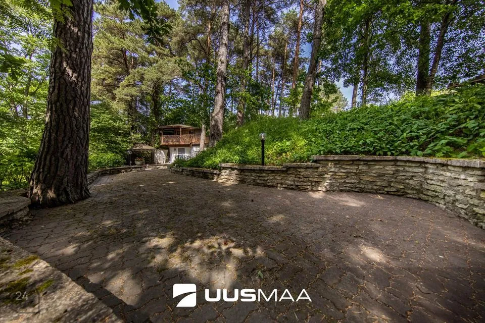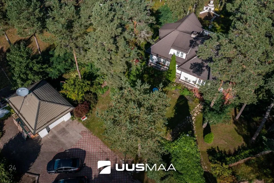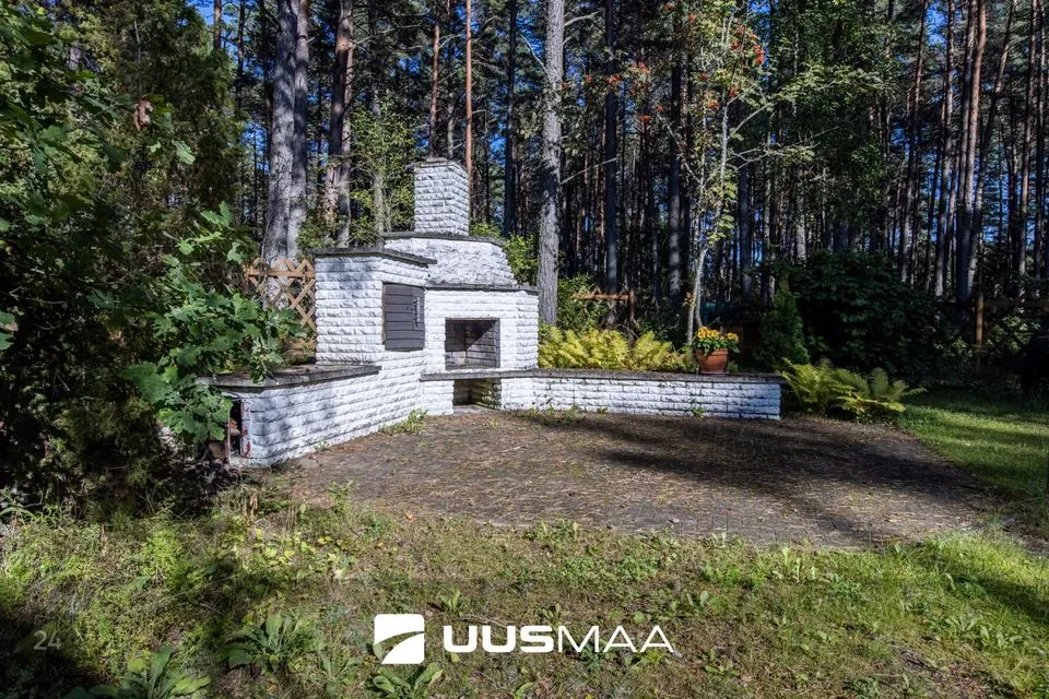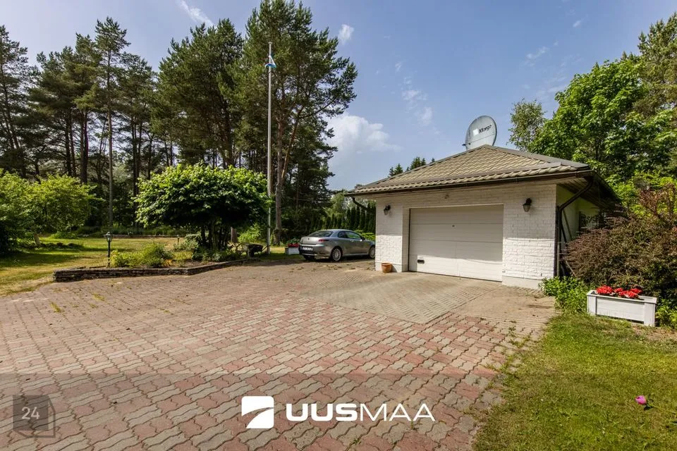 Maja ümbrus on maitsekas ja hooldatud, kogu kujundus on praeguse omaniku loodud. Garaažiesine on kaetud kiviparketiga, mujal kinnistul on armsad teerajad, sillad ja trepid. Siit leiab ka suvise istumisnurga välikaminaga. Lisaks asub kinnistul ka aed paljude erinevate viljapuude ja -põõsastega.