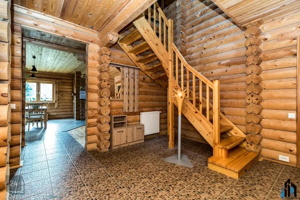 Hoovi pääseb maja kõikidelt külgedelt. Siseviimistluses säilitatud naturaalne keskkond ja algne ümarpalk ei ole saanud eraldi viimistluskatet. Põrandaid katab laudpõrand, köögiosa ning märgruumid plaaditud. Plaaditud osad varustatud põrandaküttega.
