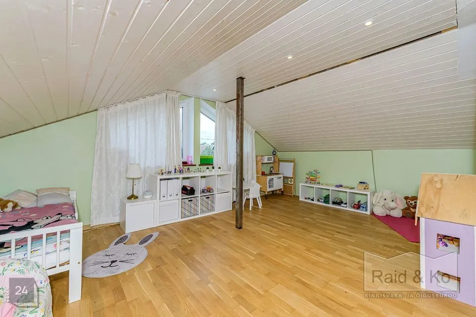 Esimese korruse akendele on paigaldatud poolpimendavad rulood. Mõnusat valgust lisavad mitmed katuseaknad tubades ja ka san- ruumis (kokku 5 tk). Teise korruse viimistluseks on lisaks värvitud seintele kasutatud ka voodrilauda, mis annab omakorda hubasust.